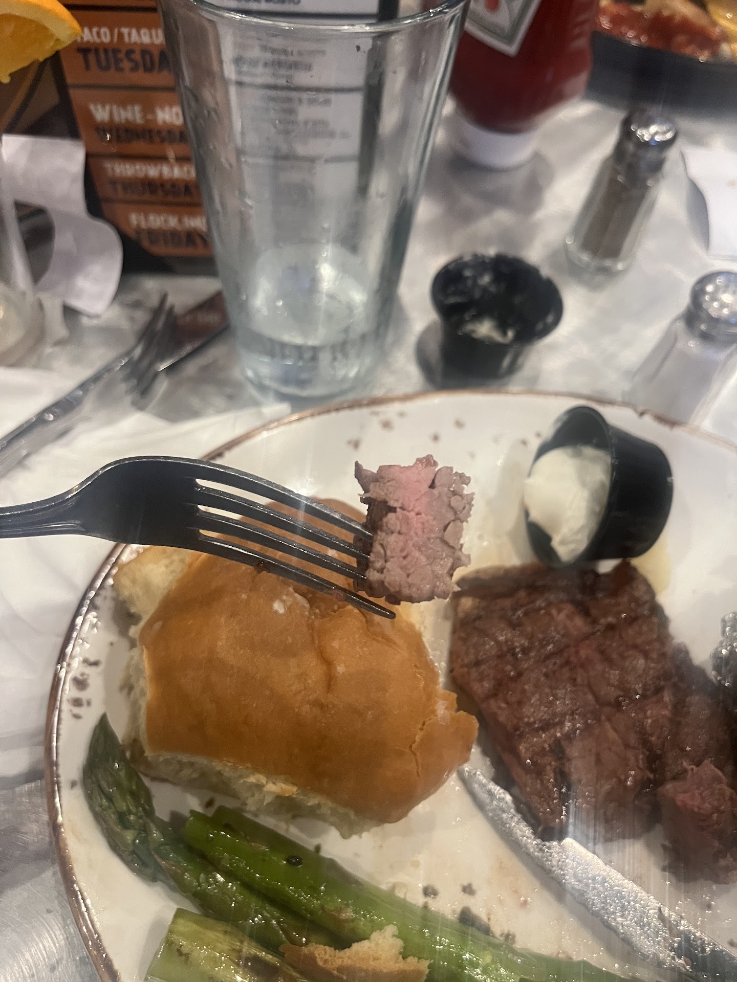 My MIL and I took my brother-in-law here for his birthday last night. The place was busy, but there was a lot of staff and people seemed to get their food quickly. We were seated immediately. Our waiter did not come to our table for 25 minutes. He asked for our drink order and brought us waters. We ordered drinks and an appetizer. The alcoholic drinks got there in about 15 minutes. The root beer did not get there for another 30 minutes when he finally came to take our order. Our appetizer never arrived. It arrived 45 minutes after our entree order. After finally ordering our entrees, the food did not come out for an hour and a half. Mind you, the waiter never checked in a single time through this whole thing. We debated leaving, but were sure the food would come at any second. Right? No. I ordered a steak, medium rare. It did not come that way. I received stale bread, hard asparagus, and overcooked steak. We were starving and were afraid to send it back due to how long we had already been there. He never refilled our drinks. In fact, all of the ice in our drinks melted and we drank that because we had no drinks. We had completely empty cups for hours. He never asked if everything was okay. Our waiter stopped at our table 3 times throughout our three hour visit. Nobody else stopped, either. Other tables were seated, had their drinks and food, and left before we even received one of the first things we ordered. Considering this was a birthday dinner, I was very upset. I get that it may get busy or you may forget to put an order in, but communication goes such a long way. Don’t only show up to introduce yourself, take our order, and give us a check. Let us know if it’s going to be long or if something has happened. Don’t ignore us and run around our table when we look at you and are starting to ask. The only person who apologized was a food runner who ran me my plate which came out maybe 10 minutes after the meals of my family. I was expecting to love this place, but I was very disappointed. I don’t imagine I will be returning or recommending this place to anyone. Don’t waste your time or money. Poor service, too long of a wait, and...