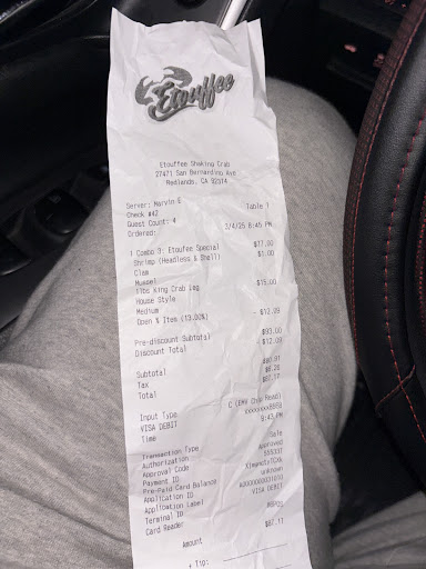 Read moreI come here more than often I just left actually and this brings me to this review . The last 3 times I’ve been here the customer service was 3/10 . Today I had a employee bring me the menu I stated I didn’t need it I was ready to order he then puts them back but does not take my order so I say a good 5,6 mins goes by as he walks back and forth on his phone very non chalant knowing I haven’t had my order taken the lady sweetest since I’ve been coming here come takes my order . The whole point is I spend a good amount of money here monthly more than 3 times a month there is no way employees should be bringing what they going through to the work space tht a customer feels the energy . I ate 2 shrimps and left and then he lied about having paper bags which we said they right there so we where giving one .