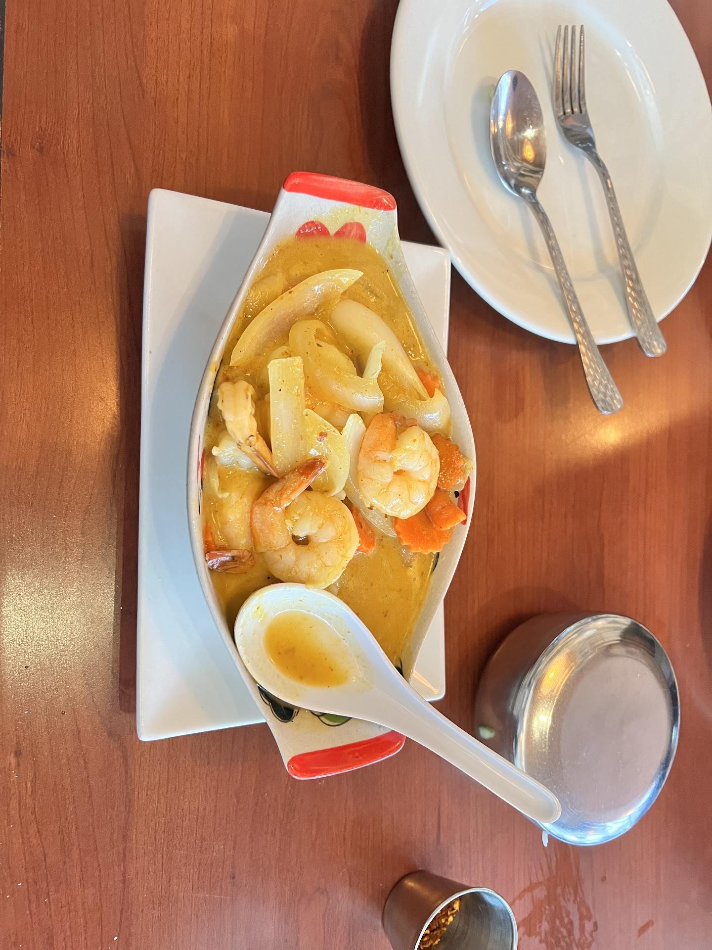 Read moreVery small, very plain inside. No decorations, music or air conditioning. Only one high chair with broken straps. Ordered Thai ice tea then realized it wasn't coconut milk but half and half. Unfortunately that was the only option. So I gave it back because I could not drink dairy and they still charged me for it. Also ordered veggie fried rice, pad Thai, coconut soup and green curry. The best tasting out of all of it was the fried rice. Pad Thai was just ok but didn't taste authentic. The green curry was a big disappointment especially as they don't add any spice whatsoever. Probably would not come here again. We chose this place because of...