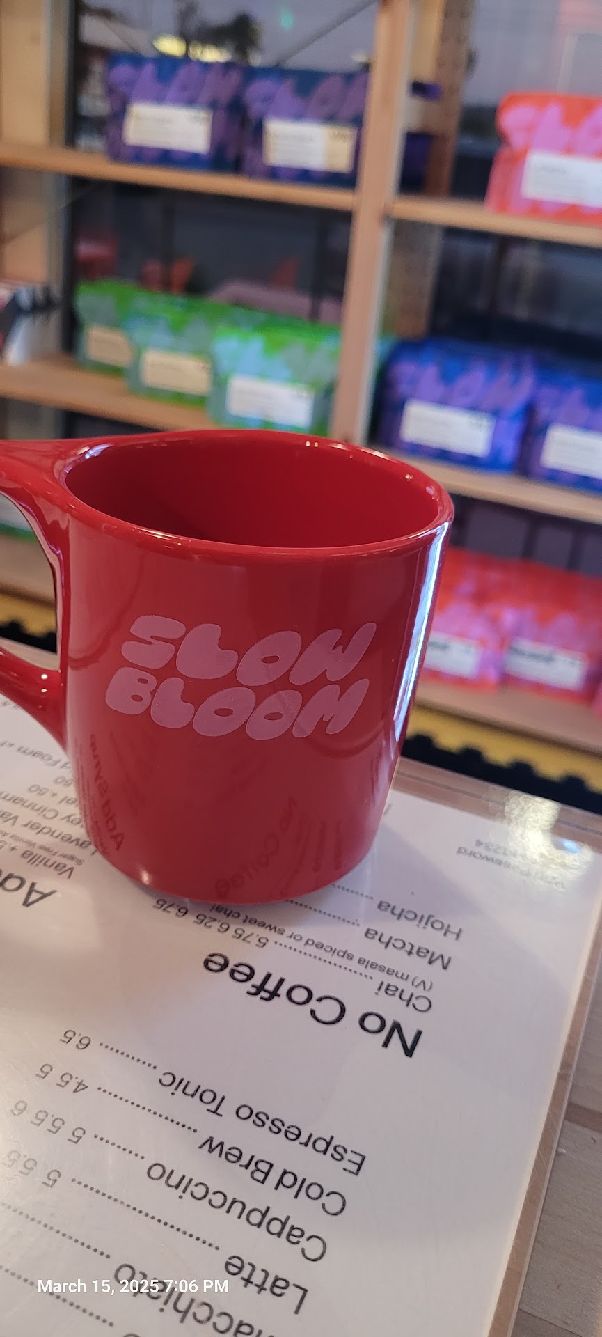 Today at my wife's suggestion we stopped in to Slow Bloom since we were in the area....I was out of the loop for so long, so I had no idea what I would find there. As soon as we walked in the door, the aroma...not just any old coffee aroma, but THE aroma from years ago greeted me, as I looked around I saw familiar faces, a familiar set-up, and I ordered my old usually an espresso in a demitasse cup, my heart was leaping for joy when I was handed my espresso with a sparkling water on the side, and when I took the first sip, no cream no sugar...I was transported back to those early days, although many things had changed, the baristas and their art had not. The coffee was even more exquisite than I remembered, smooth and rich in flavor, it was just wonderful. There I was, sitting next to strangers in this busy little shop at a wooden table with a smile I could not let go of, memories and feelings flooding my mind and heart. It felt like visiting old friends who I had lost contact with for a long time. I'm pretty sure the team here doesn't remember who I am, I'm just a face in a big crowd, but I'm so overjoyed that you all came together here.