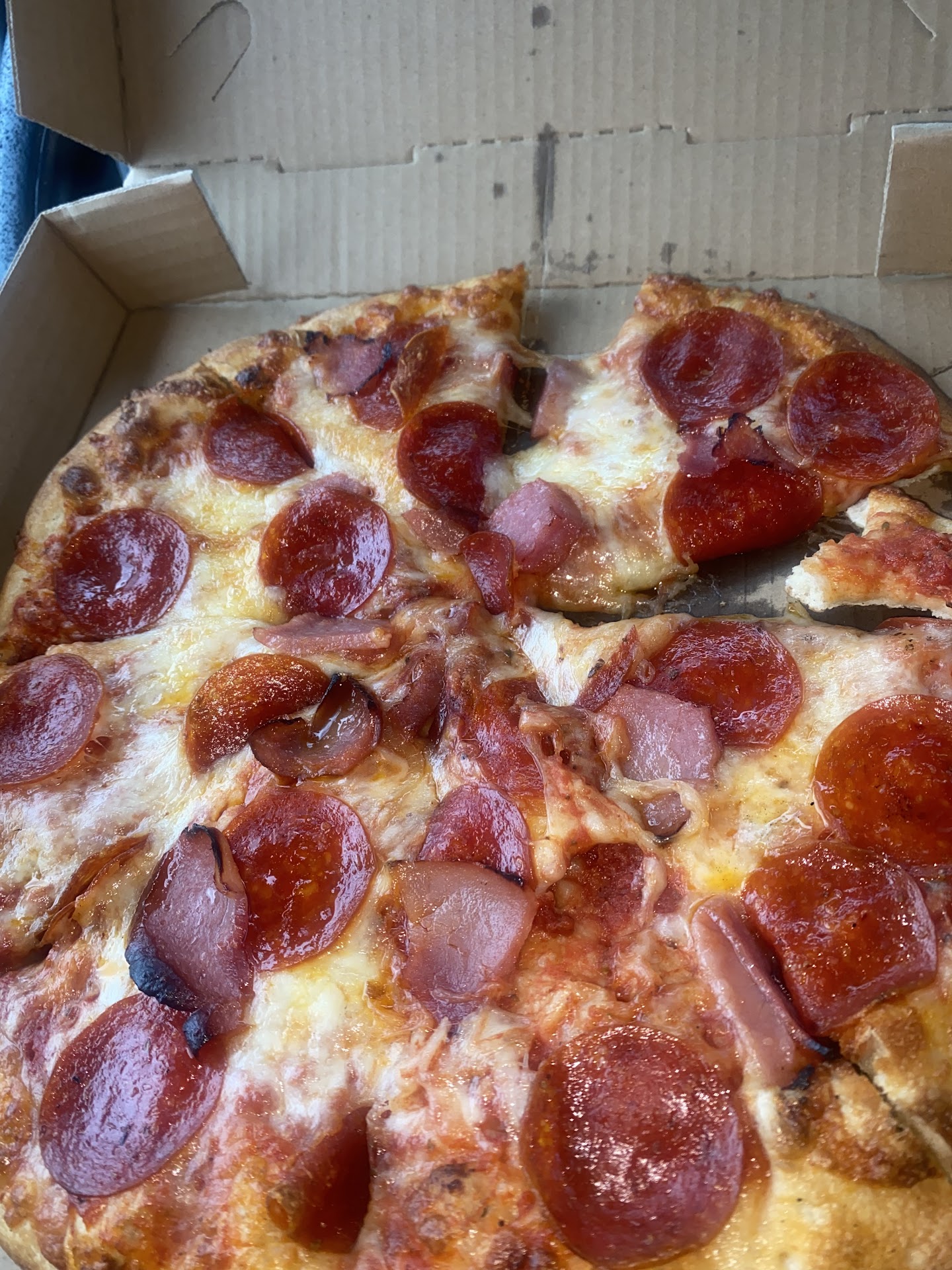 Just placed order. Just ate pizza. OMG. This pizza IS outstanding. I ordered a large (14") Veggie and added pepperoni (I asked them to chop my Pepperoni's). Dough is excellent. Entire pizza is exactly what a person hopes for. The Baklava, light not overly sweet absolutely delicious. The best. Greek Salad good price absolutely delightful and home made Salad dressing. Very good.