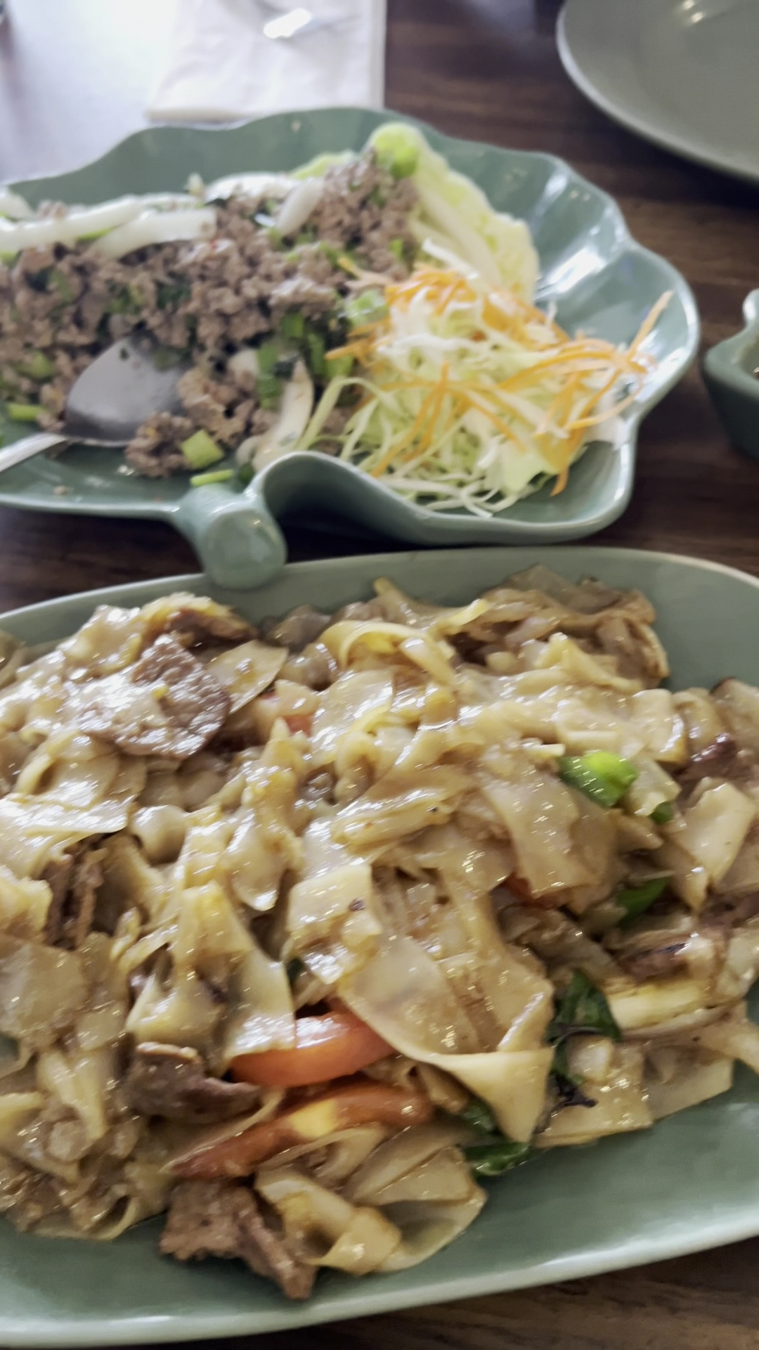 We ordered the pork laab, beef drunken noodles, and pad Thai. The food was amazing and very well seasoned. The spiciness scale is Thai-accurate, so donโt come in here thinking to flex your palate because you will leave humbled.