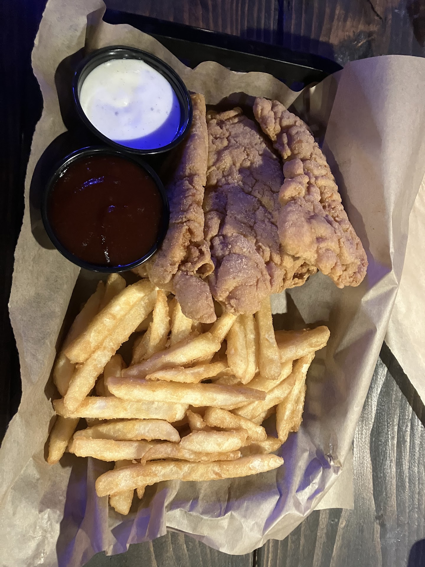 We came on Friday 11/11/2022 at 6:30PM looking forward to Friday Punch Bowl, speciality drinks and eating. We checked the menu before arriving and were told Hot Dog we tried to order was not being offered anymore. We were told no Punch Bowls or speciality drinks available. We ordered 2 waters and ice tea while deciding and did not receive them. We reasked for these drinks and were brought ice tea, though no waters. We asked another 3-4 times for water during our time there and never brought water. Ordered tri-tip sandwich and when it came was different than described on menu… menu said was thinly sliced, with onion straws, mushrooms and provolone cheese on a warm butter garlic French roll. The sandwich came with chunks of meat, not coverings the whole sandwich, weird sauce on plain bread which is totally different than menu says. The meat was dry and tough! Told the waitress was the wrong sandwich and she said this is how they were coming out tonight. It did not taste good! Also ordered Quick Draw Flatbread and menu said had shredded buffalo chicken, bacon, red onions, diced celery, mozzarella and ranch drizzle. The flatbread chicken was fried chicken tenders cut up, not shredded & had buffalo sauce drizzled on top. There was none of any other ingredients. The pizza was burnt on bottom and crush was hard as a rock and inedible! Very disappointed with flat bread pizza! The chicken and fries dinner was alright. The bill came up wrong-we ordered 4 well drinks and 1 ice tea and charged 2x for ice tea and also put $10.50 Grey Goose charge. When we told the waitress she said we ordered it, which we didn’t and couldn’t do anything about it as was in our drink already. Well drinks were $6.00. There were a lot of servers though they seemed more running around like chickens with their heads cut to off as not being helpful or attentive most of the time. We did enjoy the live music! Not a good dinner experience! We overheard other customers talk about not liking...