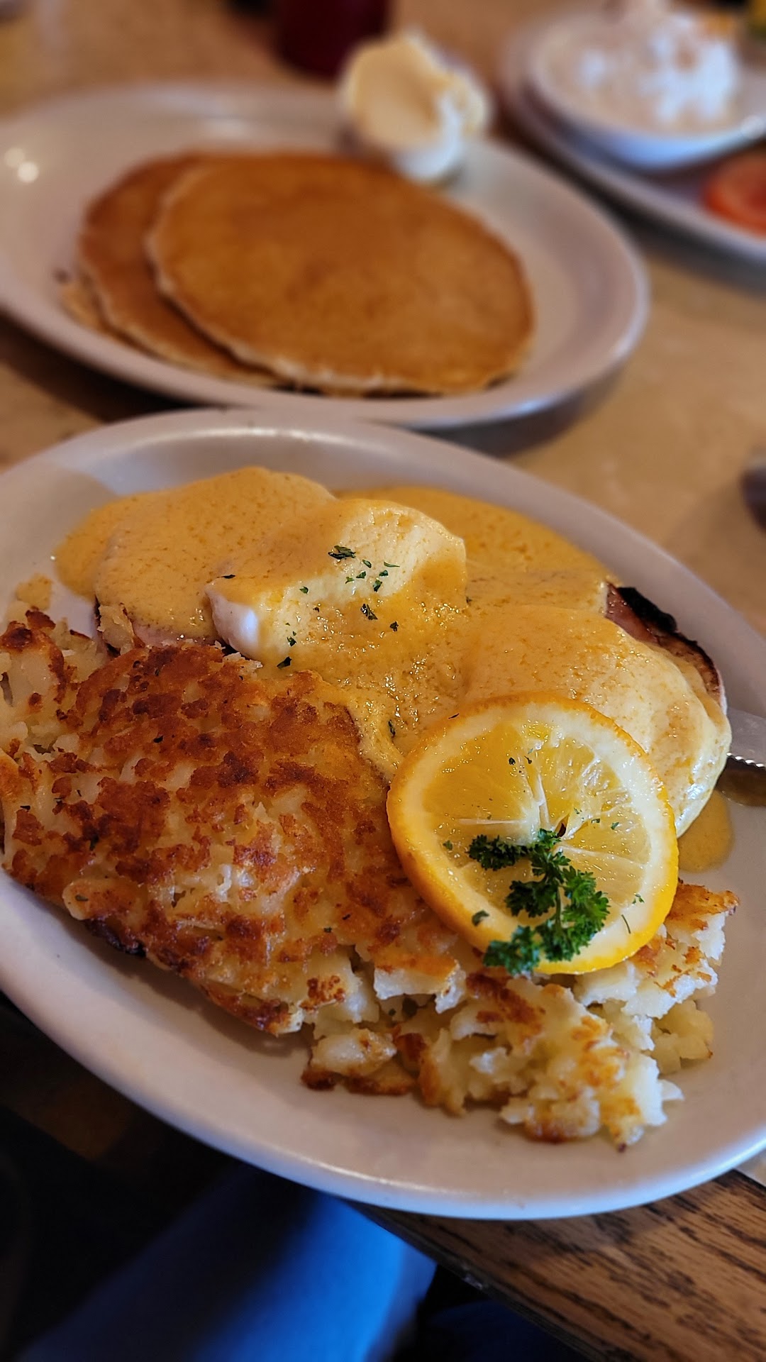 We came here after leaving Mo's. The atmosphere there was very rude and put upon. That coupled with their display of political preferences put a sour taste in my mouth. I like my eggs without fascism. Anyway, a quick Google search showed us 5 below was minutes away and we decided to give it a shot. I was immediately blown away by the customer service. It is obvious every one here works as a team. From servers to cooks to bussers. We were welcome as soon as we stepped inside. Given that we were hungry i was stoked that this restaurant actually likes it's patrons. I think our servers name was Anna and she was incredibly on top of it. I swear I just had think of something and next thing I know she was right there. Prices were very reasonable for portion sizes. I got the classic eggs Benedict with hashbrowns and fruit. My oldest got the 2 sweet cream pancakes and my youngest got the French toast kids meal. My eggs benny was perfect. The hollandaise buttery and lemony, just right. My 17 year old wolfed down those sweet cream pancakes in between sounds of "mmmm" and "ohmygosh". The kids French toast looked and smelled amazing and was the perfect portion size for my 7 year old. He also loved it. Delicious coffee and I cant say enough how great the food and customer service. We will definitely be back when we come back to...