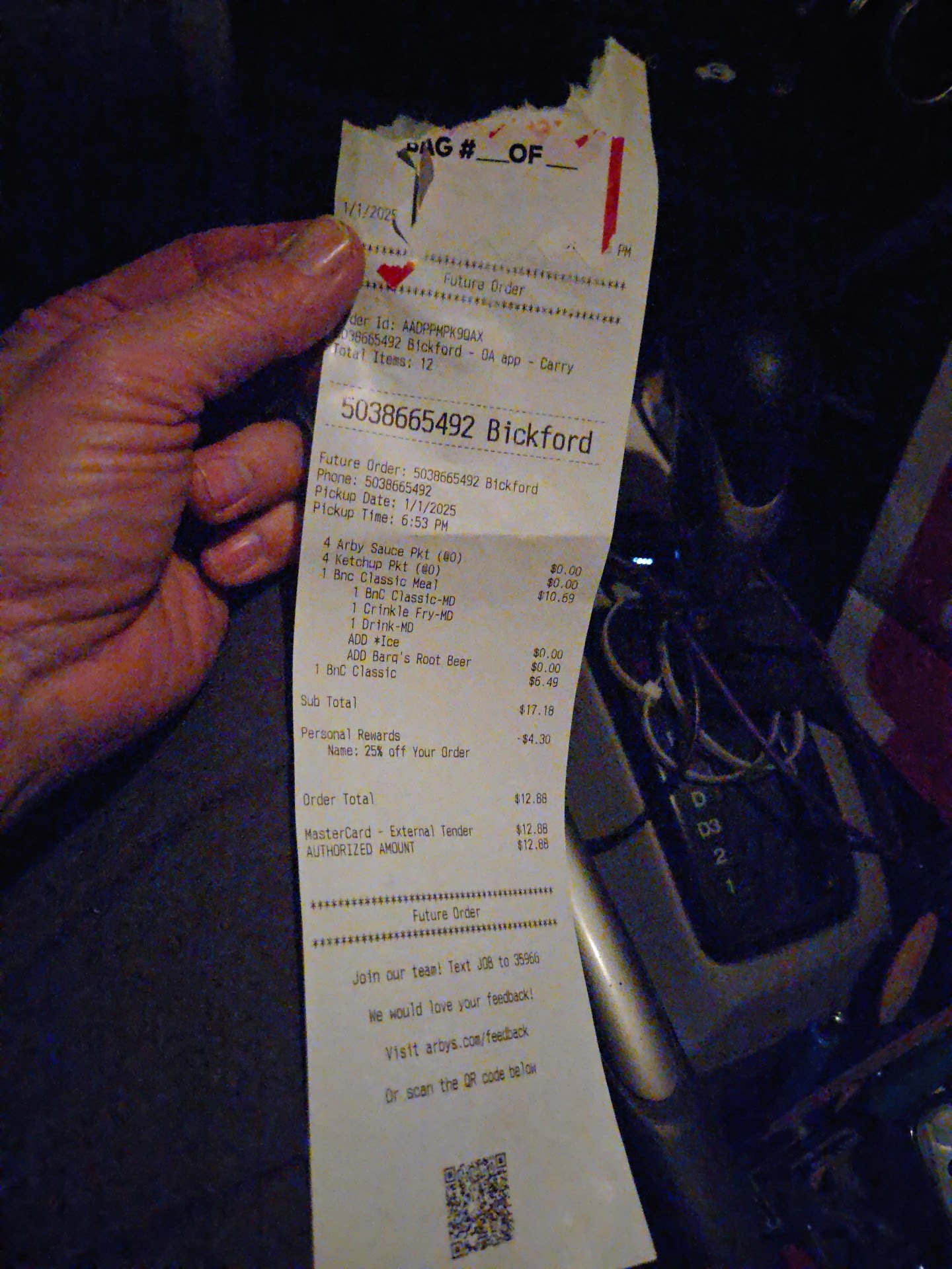 Read moreI went thete today to correct an order from a previous day when I ordered the 5 piece fish only to get home and given three so, I called and talked to Jessica she told me to come back this week NO PROBLEM so, I did. At that time I ordered the fish meal to replace the previous one and then a bacon Swiss schicken sandwich and a regular roast beef cheddar. Well, I guess when the guy tossed it at me in the wi dow in a stapled closed bag and didn't give me a receipt I should have known something was wrong. I get home which is outside Redmond only to find th at in the bag was 2 classic roast beef sandwich and in what was supposed to be my other was a dried out bun,chicken patty with dried cheese and bacon. There was no Lettuce, tomatoes or mayo NOTHING I didn't get a receipt in either bag so, nit sure what I paid for !!!!!! Tried calling but, can't get through because everyone is busy but, I am not sure what they are doing because obviously they aren't doing orders. Done...