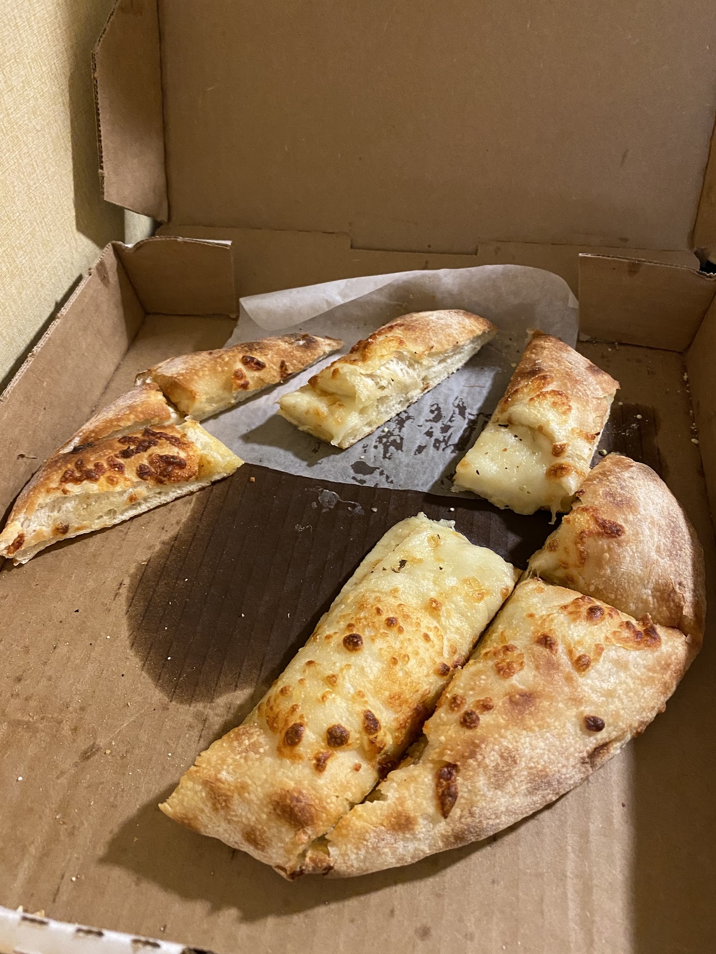 Once we opened the boxes, I began to understand why the poor girls were so exhausted. These pizzas were stuffed crust.