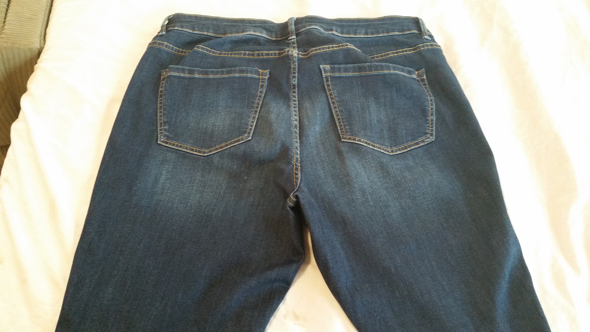I came back with the jeans, the tags, and the receipt ($69.95, purchased only 3 days earlier.) After a long wait, his wife came over, and he joined in shortly after. What a HUMILIATING and horrible experience! His wife started by telling me they were low quality jeans made of cheap fabric. Then she said that if it was bleach there would be white spots. I tried to point out the area of lightened fabric was an almost perfect square from where I sat. (Look at the pics and decide for yourself!) He said that he had said he would pay for them if they were "ruined", and he thought they clearly weren't, so he wasn't going to pay for them. He said, "No one will even notice." THEN he said, get this!, "Everyone wants something for nothing." Excuse me? They made such a scene that several employees walked over to see what the problem was. I could see that things were only going to get worse, so I apologized for wasting their time and politely left (with my ruined jeans!).