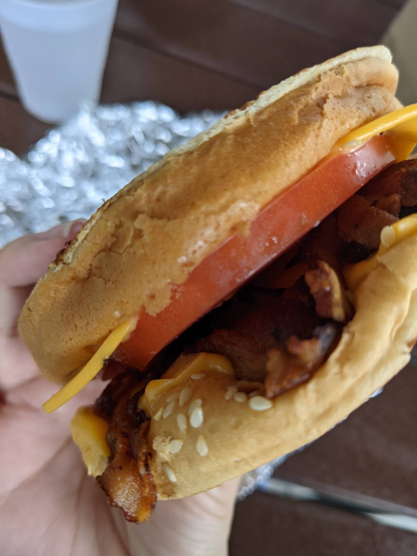 However, when we went there just last night, we opened our burgers up when we got home to find they had decreased in size to about 2/3 of what they used to be. Not just small patties, but a much smaller bun, too, that is quite literally the size of the palm of my hand. This wasn't just my perception or one unluckily small burger - all three people that I'd gotten food for said their burgers were much smaller, and we even have proof of how much they've decreased.