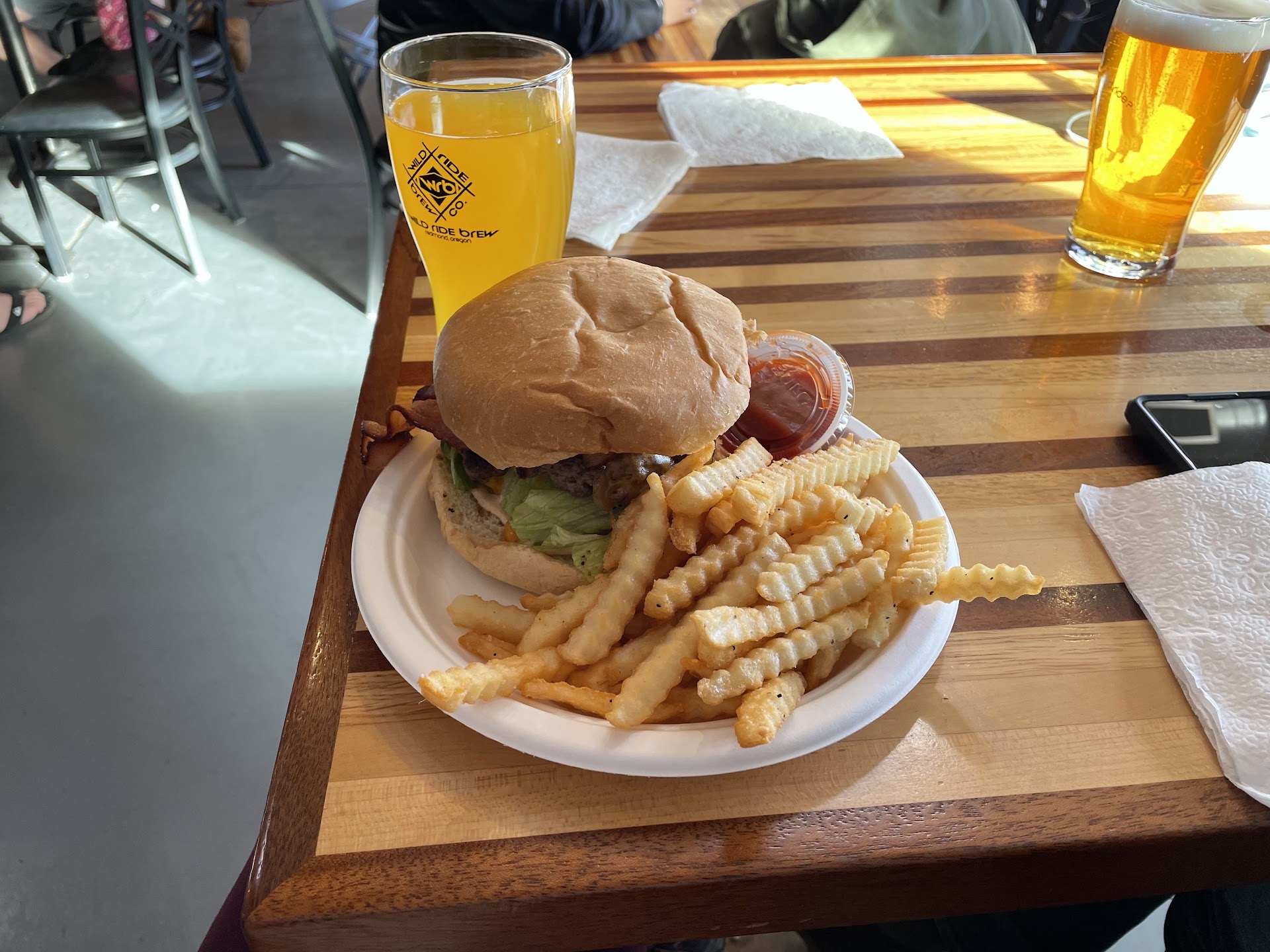 Read moreBest burger in Redmond, hands down. Maybe Central Oregon. So I went to Wild Ride for a drink and chill and I asked if they had a lunch menu. The guy there said food was ordered outside so I went to check out the selection and decided on a the "Brewers Bacon Burger". At $13 I was a little skeptical, but I will say the quality was worth it. Angus beef with applewood bacon mixed in and 2 THICC slices on top with a mountain of sharp cheddar cheese with lettuce and a fresh slice of tomato to make you wet the bed. Trust me. 5...