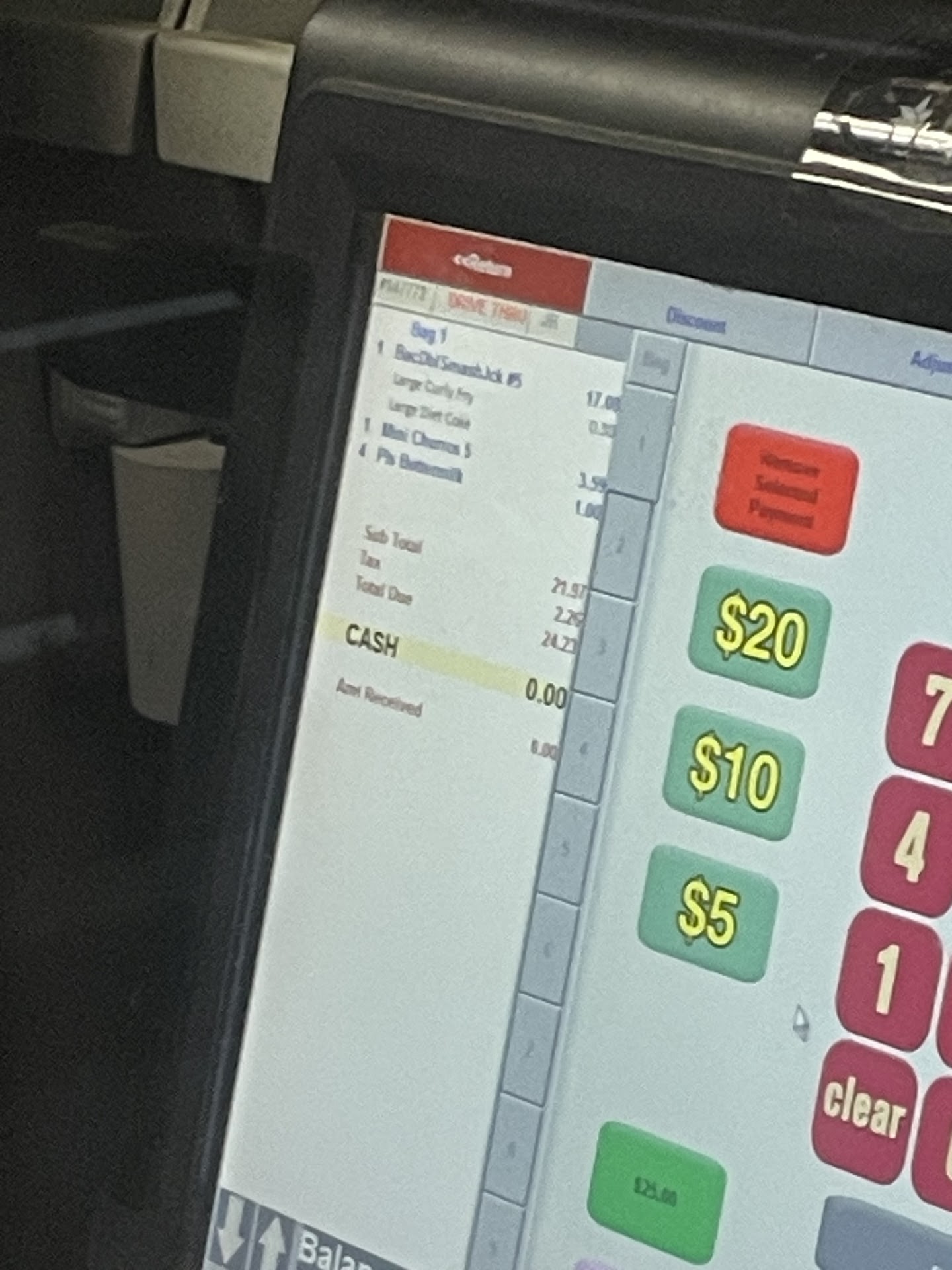 Read moreToday was the worst experience I had, because I made the payment with my card and the clerk at the window told me that I had $ 8 left and I told him that I had no cash and asked him to remove the two milkshakes from my order and Then she told me to wait a moment and the manager passed my card again and told me that it had been rejected. She asked me if I had another one but I said no, then she said that she would not give me the food I ordered, and I left but when I checked My account had a surcharge of $ 20.20 and I went back and told them that they had charged me for the food. She said no and I showed her my account statement indicating that they charged me the $ 20.20 charge and even so she said no if it bothers me. Much because she did not believe me even though I showed her my account statement, and the worst thing that she is Hispanic and she preferred to take care that the store did not lose, in the end they charged me and did not give me the food, I just said that God bless her because I did not could do nothing to solve why and how They made the surcharge for me. Well, in the end I ran out of food. I hope the company thanks her for taking good care of the business, making the surcharge for the food and not...