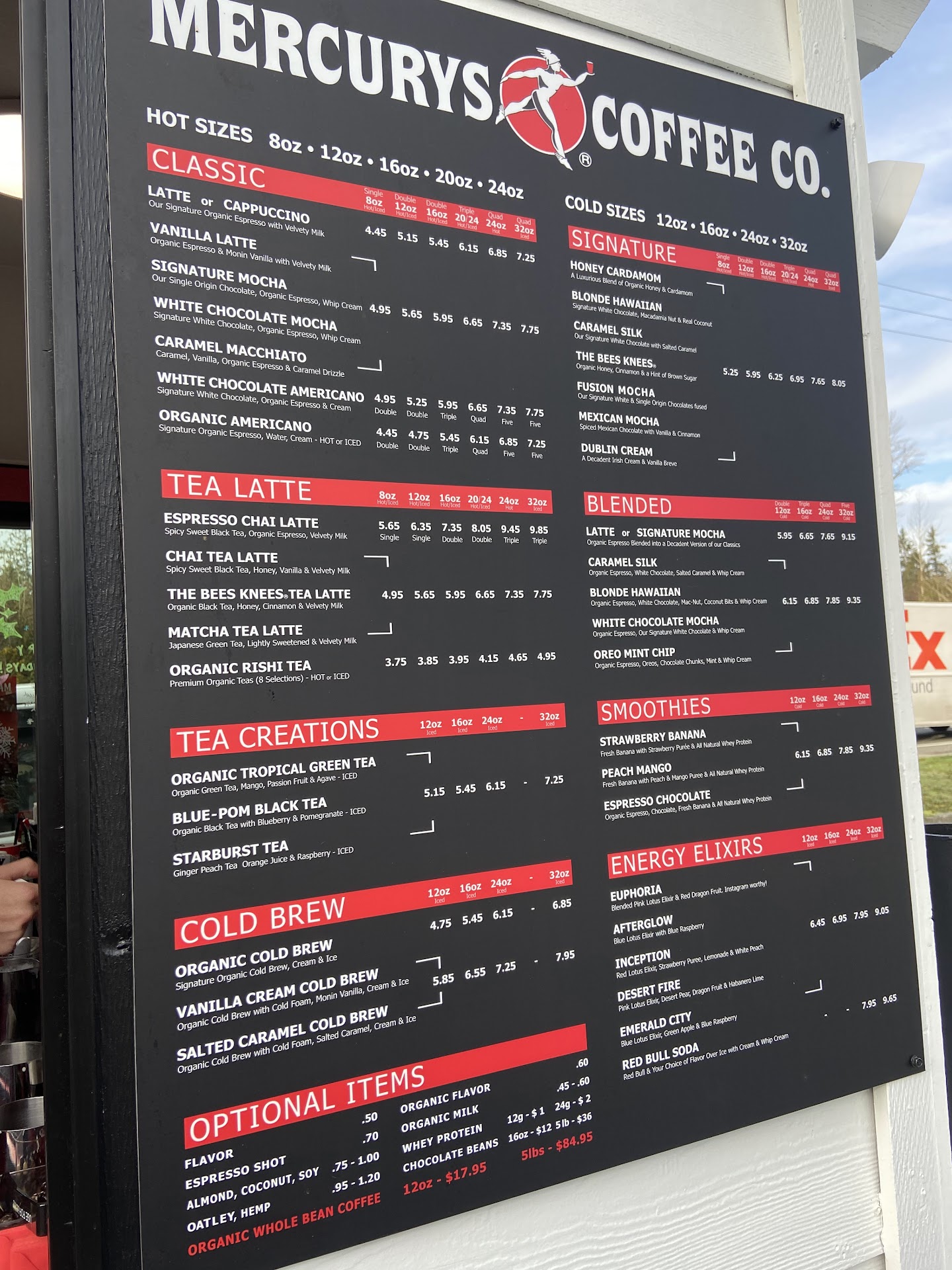 Read moreI love mercurys coffee but every time I go in it seems as if they raise their prices. I get a 12 oz americano with vanilla and a shot of coffee, which is basically water and coffee and my drink now costs closer to 7 dollars. It’s extremely overpriced, which is...