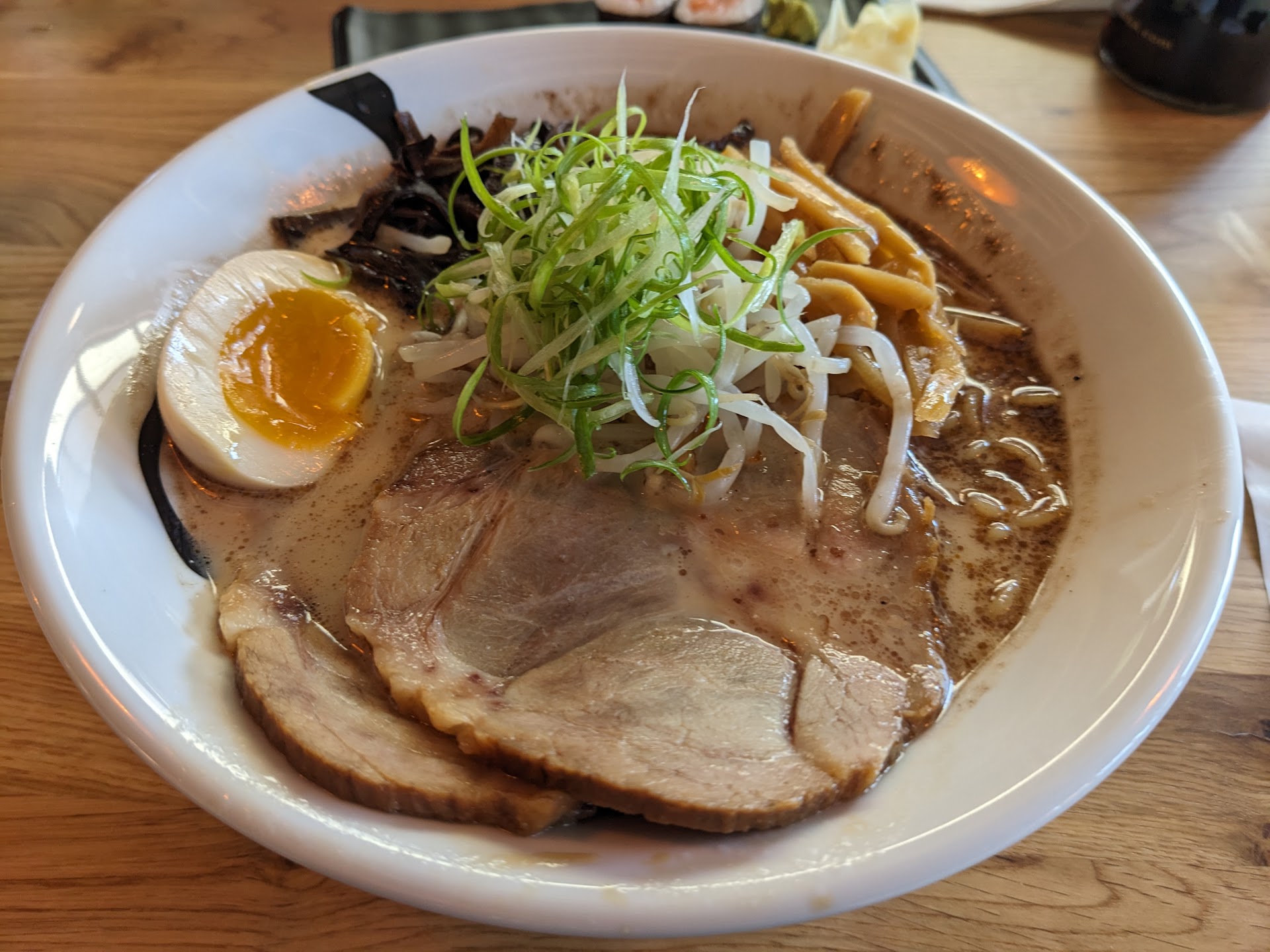 Tonkatsu Ramen: rich broth that's not overly salty or greasy! The pork chashu is cut really thinly and doesn't really stand out in the bowl at all in terms of flavor or texture. I found more tastebud satisfaction from the other toppings honestly.