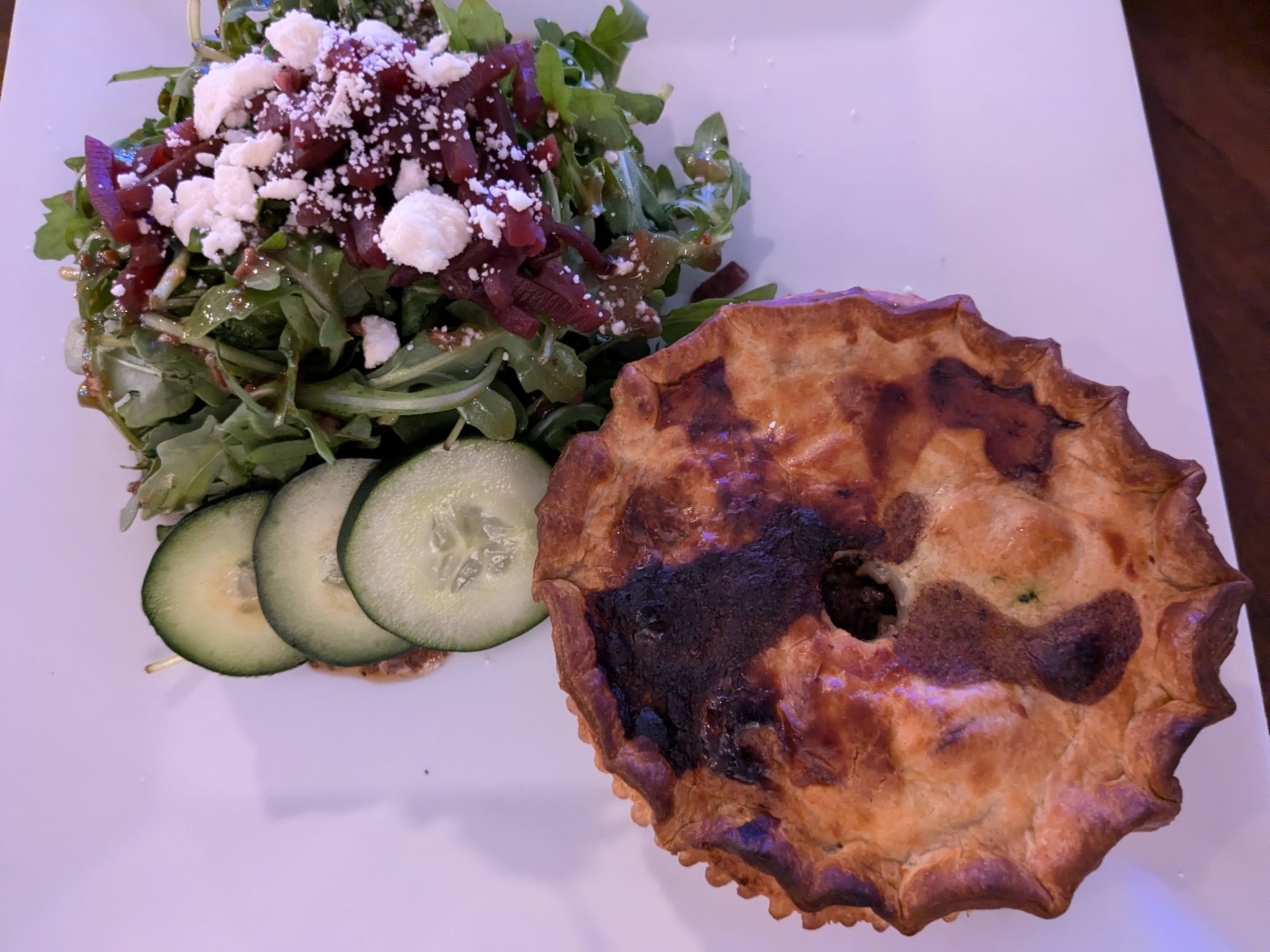 Menu and Price: Limited menu which is a pro/con for some people. All pies are made by French Bakery Belle Epicurean and heated on site by the staff. A couple of people in our party made a comment about the price for the size of the pies but I'm actually okay with it as other restaurants (i.e. Three Lions Pub) have similar pricing but smaller portion. Its what I would consider the "right" size for most people but everyone has an expectation of larger portions.