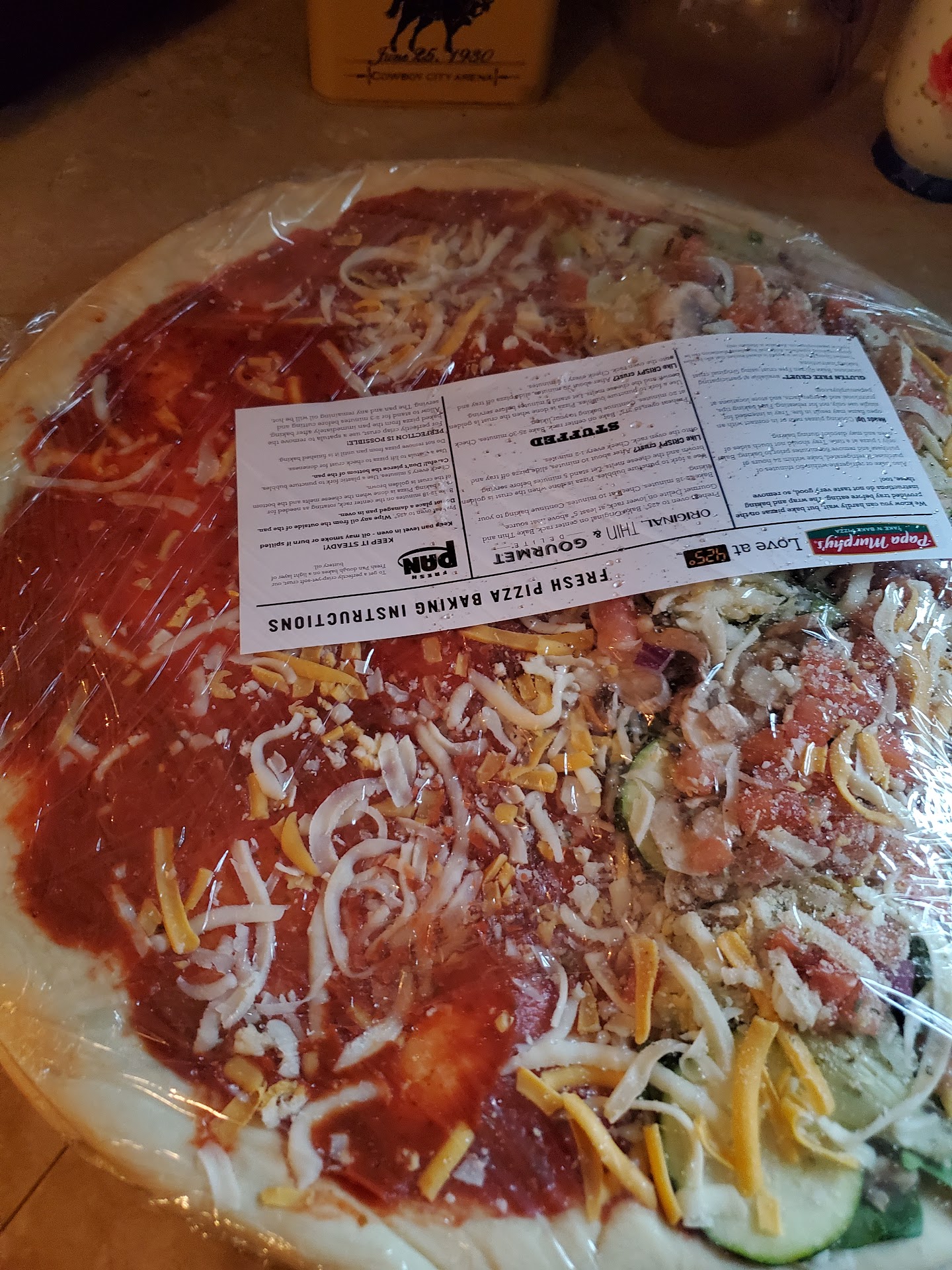 Update: I try to stay positive but business is bringing out the negativity. Today my wife (Kerry) ordered a pizza online and I stopped to pick it up. I was early so it was in the process of being assembled. No worries, I just took a seat. A minute later they called my wife's name and a lady who'd been waiting when I came in jumped up and accepted it. No problem as it's not an uncommon name... except, it turns out that her name was Karen. Eventually the staff realized that I was still waiting and asked what the order was. I replied half Cowboy, half chicken garlic. They asked large? I responded probably but I don't know. I assumed that they had a record of the order. I get home, some 7 miles away and find out that she ordered, and paid for, a family size. She called and the gentleman said that they wouldn't do anything about it unless we returned the large pie first... which my wife is currently doing because she can't afford to bail me...