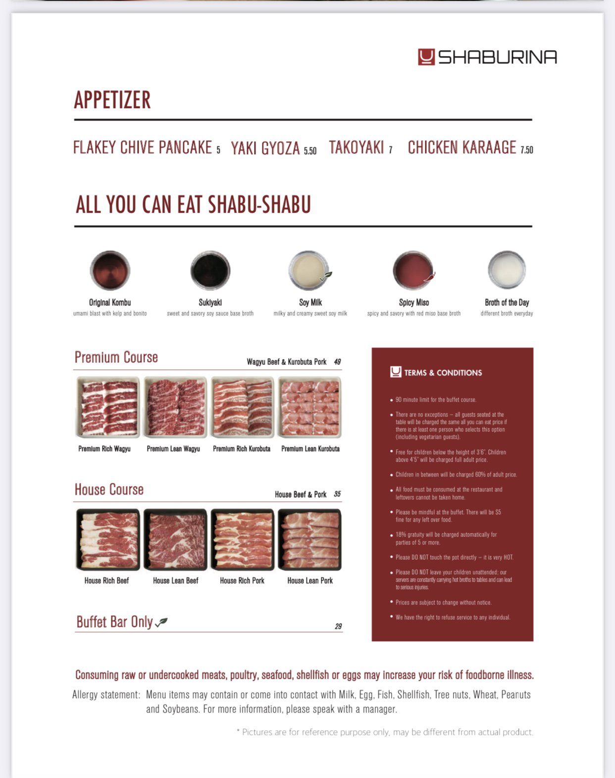 Read moreShaburina in Redmond, WA, offers a delightful shabu-shabu experience that stands out for its freshness and variety. Having dined there twiceâonce for lunch and once for dinnerâI've had the opportunity to thoroughly enjoy their House Course, which includes a choice of broth, Beef Chuck, Shortplate, Pork Belly, Pork Shoulder, and access to an extensive buffet and sauce bar. The food quality is exceptional, with all ingredients being remarkably fresh. The meats are served super thinly sliced, making them perfect for quick cooking at the table. I found myself completely stuffed after both visits, which speaks to the generous portions and the all-you-can-eat nature of the experience.