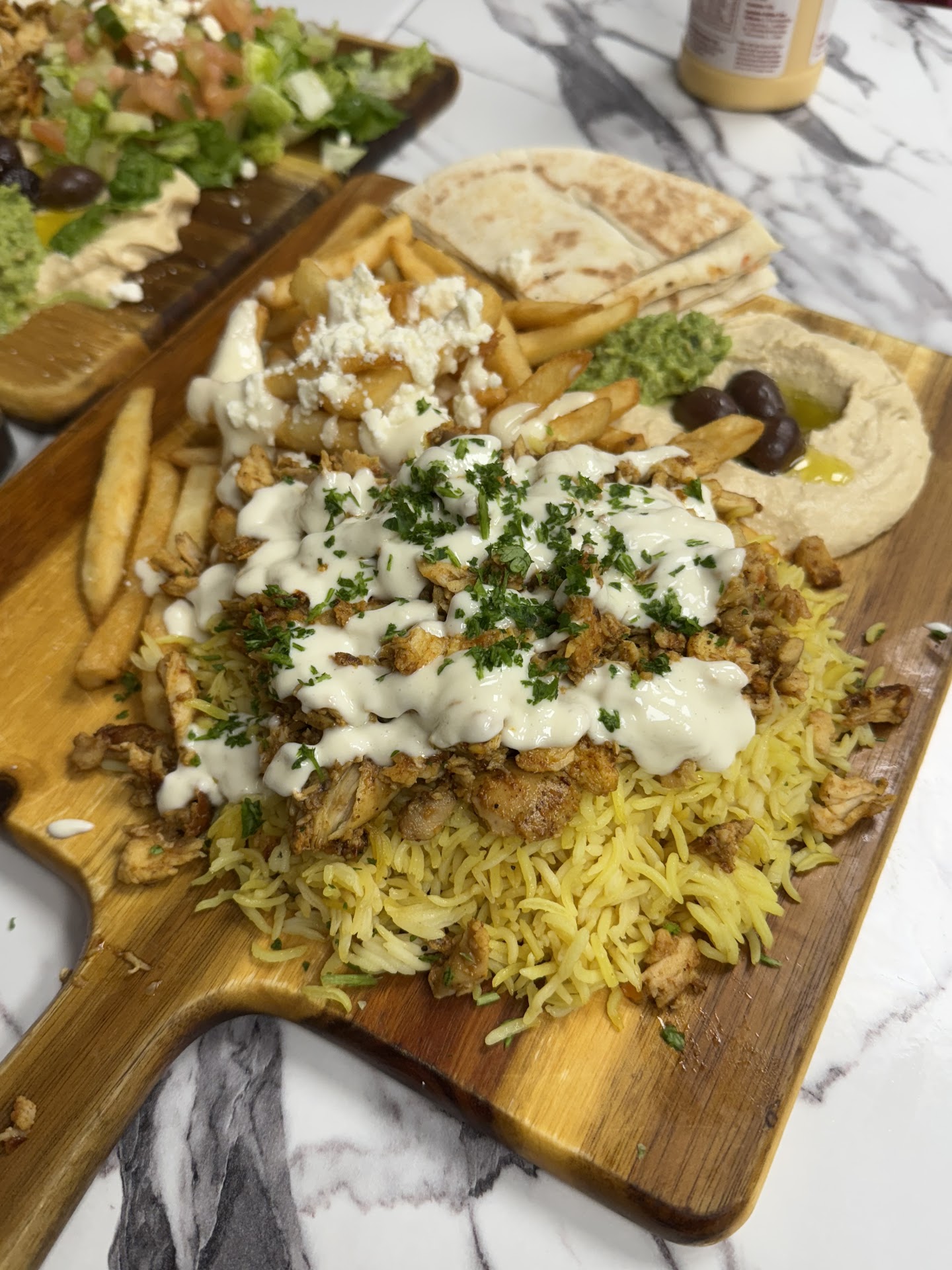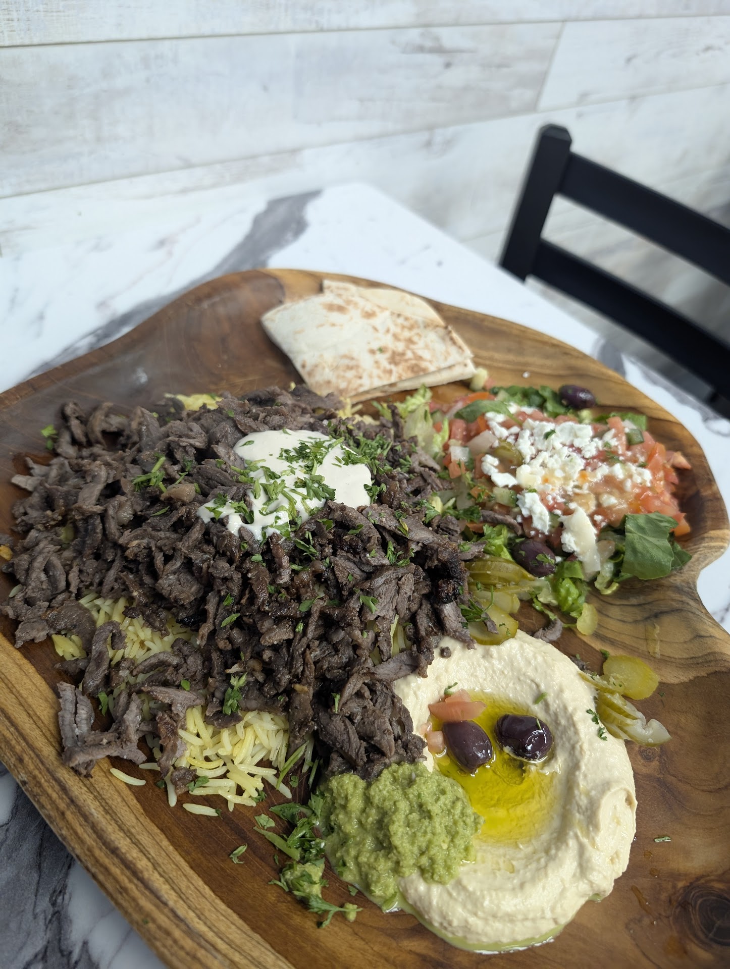 Read moreNice plating for a to go place with limited dining area. My chicken shawarma, especially with the garlic sauce was delicious but the sauce in the wrap was inconsistent and the chicken dryer than I would have like. I didn’t try the beef and lamb but was surprised with the nicer plating. Was expecting paper plates.