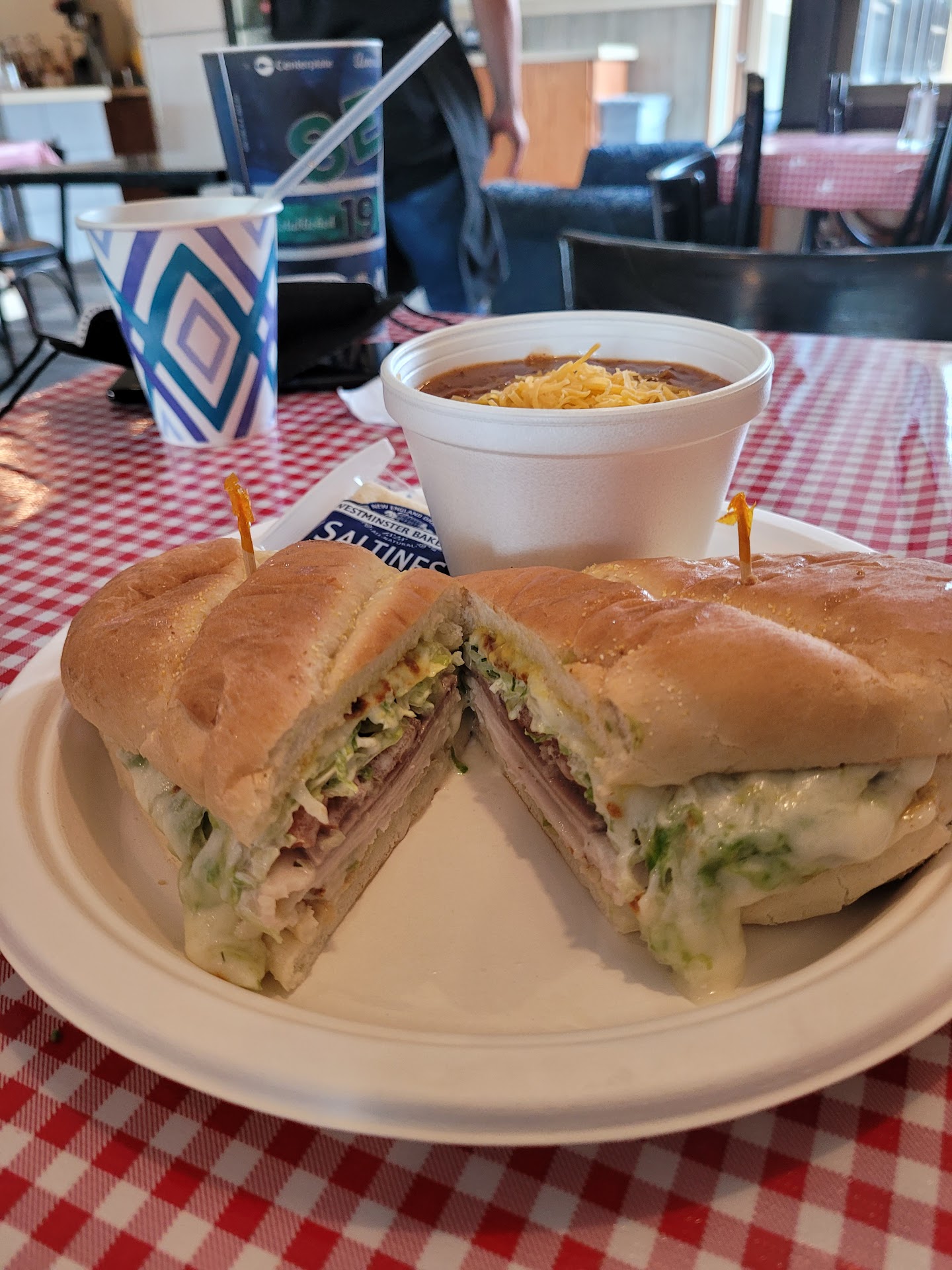 Read moreDON'T GET THE SOUP Let me just say, the turkey sandwich is absolutely scrumptious! I would totally get this again and again. I asked them to warm it up, which they happily did, and I asked for sour dough bread. Amazing! But the potato soup was awful. Straight up gas station, cheap canned food from the food bank. Gooey texture and gross. I wouldn't eat it if they paid me. Also, the crackers that come with the soup were stale. They really need to update these things. I haven't tried the chili but I heard it was good. Definitely give this place a shot, just...