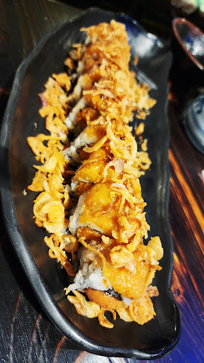 Rock 'n' Roll California roll ($11.95) w/spicy tuna and green tobiko on top. This was my ultimate favorite sushi here! Cross between spicy Tuna and California roll with an extra punch. Just try It!