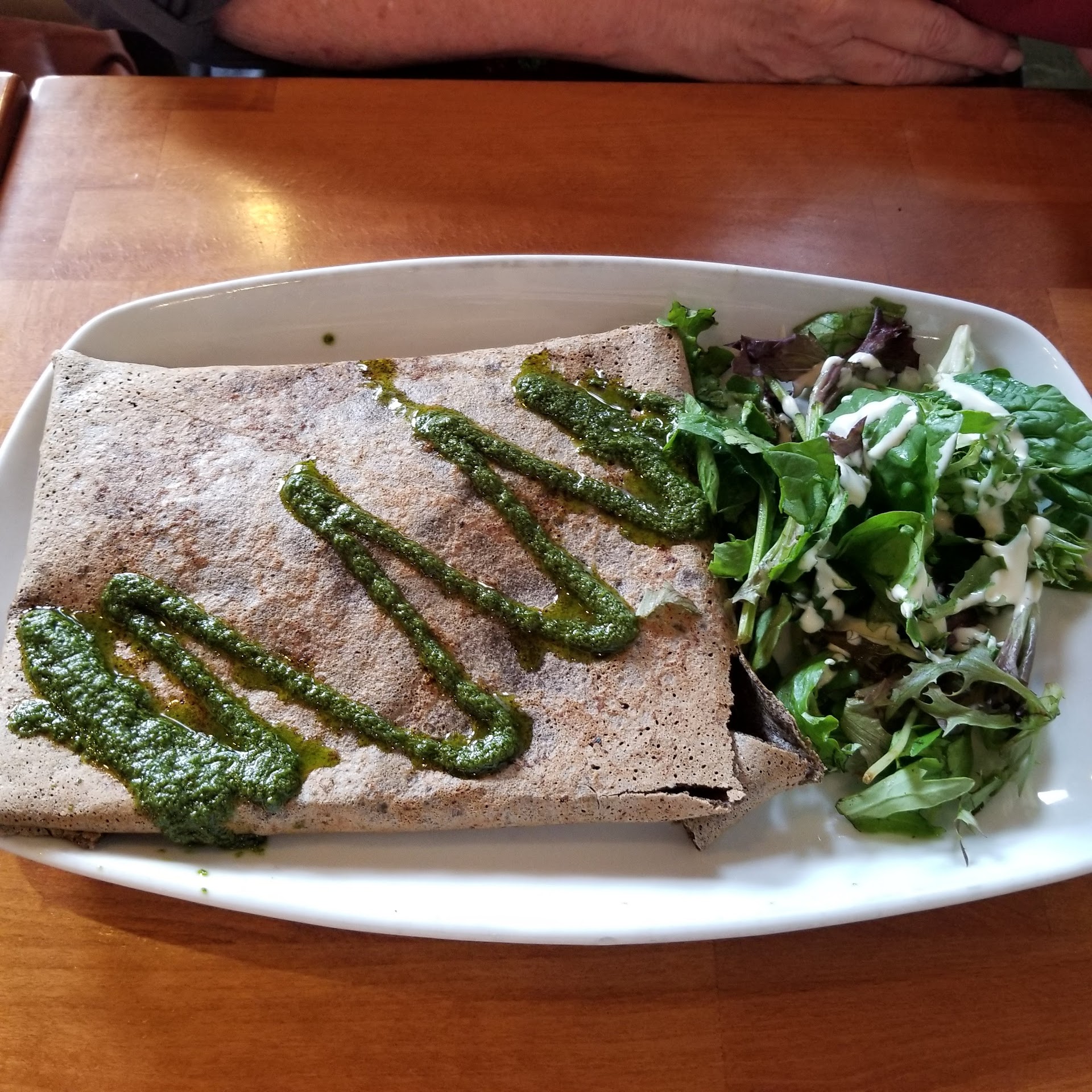 My friend ordered the Fit Crepe which is scrambled egg whites, tomato, mushrooms spinach and asparagus with a basil pesto on top. She loved hers, but didn't care for the actual crepe, which was also hard and crunchy.