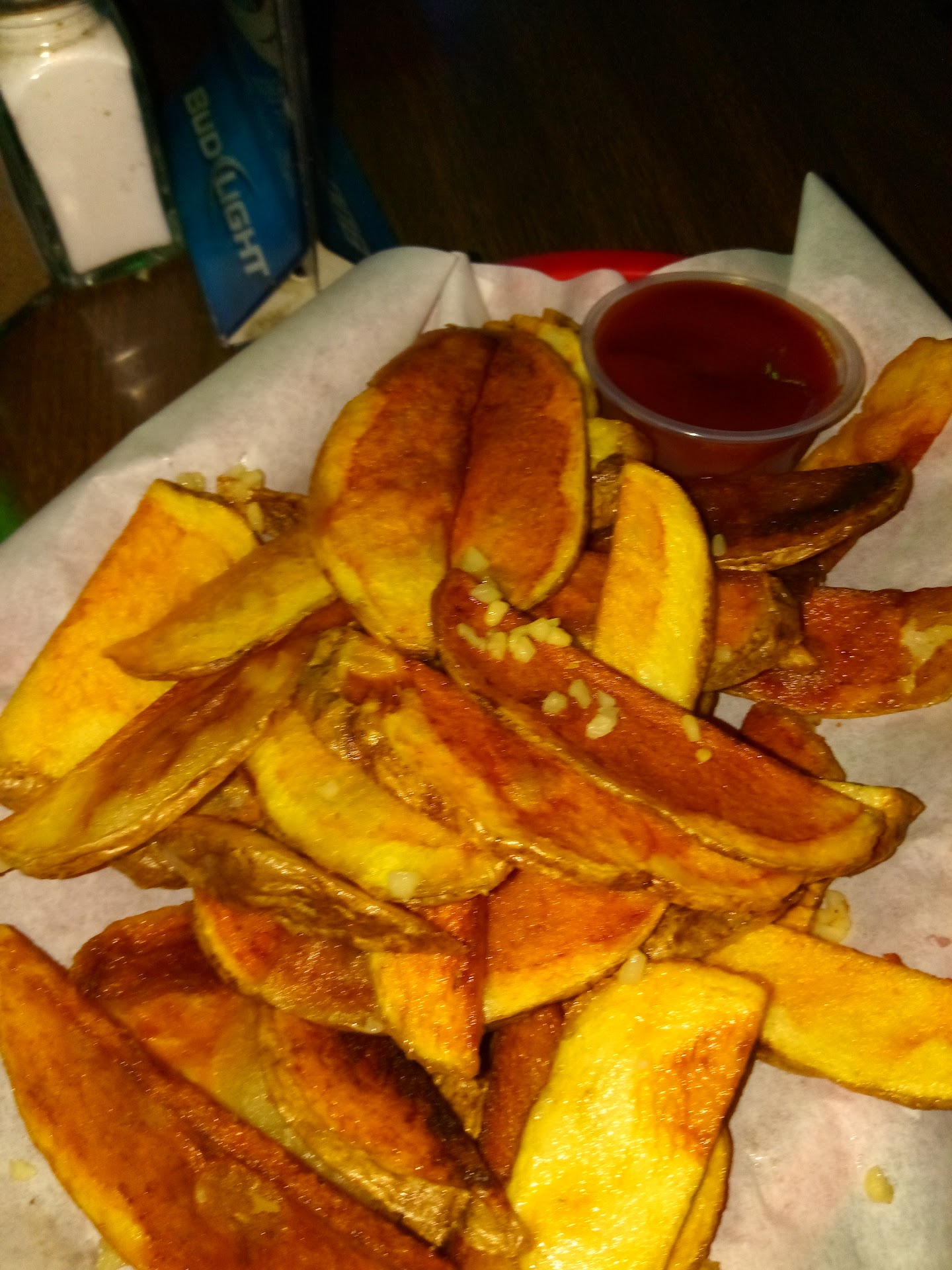 Read moreCrappiest food EVER! I gave 2 stars because they had a pool table. Otherwise, one star is still too much for an outrageous waiting time for crappy food, and there were only two orders ahead of us. The Jalapeno poppers where NOT done and you could still taste the wax on the hard pepper. The garlic fries I ordered were simply over-cooked potato slices, sliced thin with maybe half a teaspoon of pieces of chopped up garlic. Clearly they were in a rush to get is our food and were willing to sacrifice quality over it....