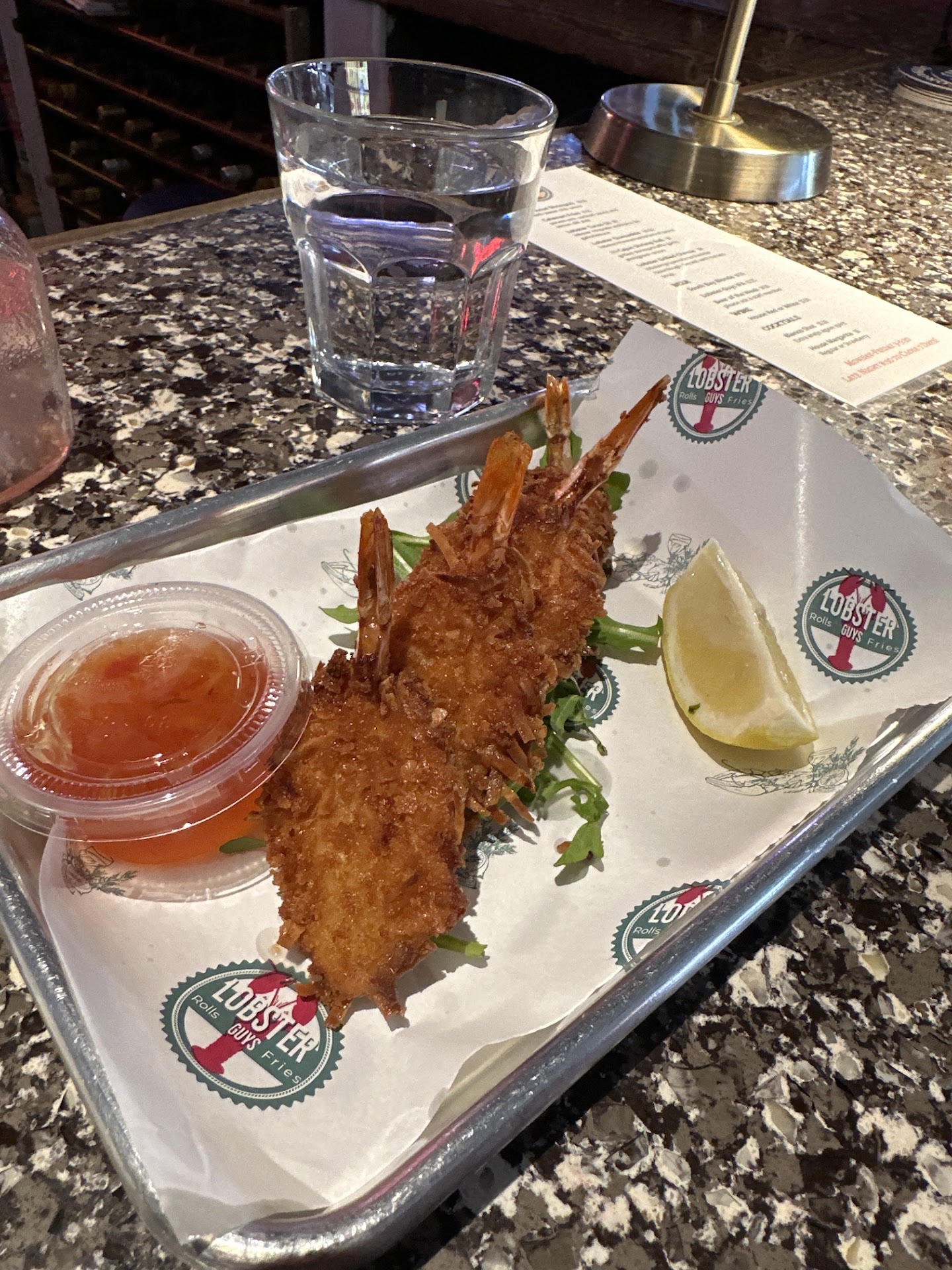 October 2025 Review; Food: The joy of tonight was late Happy Hour (HH) that goes from 8:30PM to close and the 3 petite lobster tails for $40. Lobster Guys is quickly becoming my go to lobster and beer joint. So Connecticut Lobster roll ($21), spicy Cajun shrimp roll ($14 HH), Calamari Fries ($8 HH), Coconut Shrimp ($6.50 HH), Three Lobster tails ($40), Margaritas, and a Firestone Blood Orange Beer. Yeah it was all good but I would skip on the Calamari and coconut shrimp as it is just deep fried seafood. Spend the extra on the good items that you want to eat anyway.