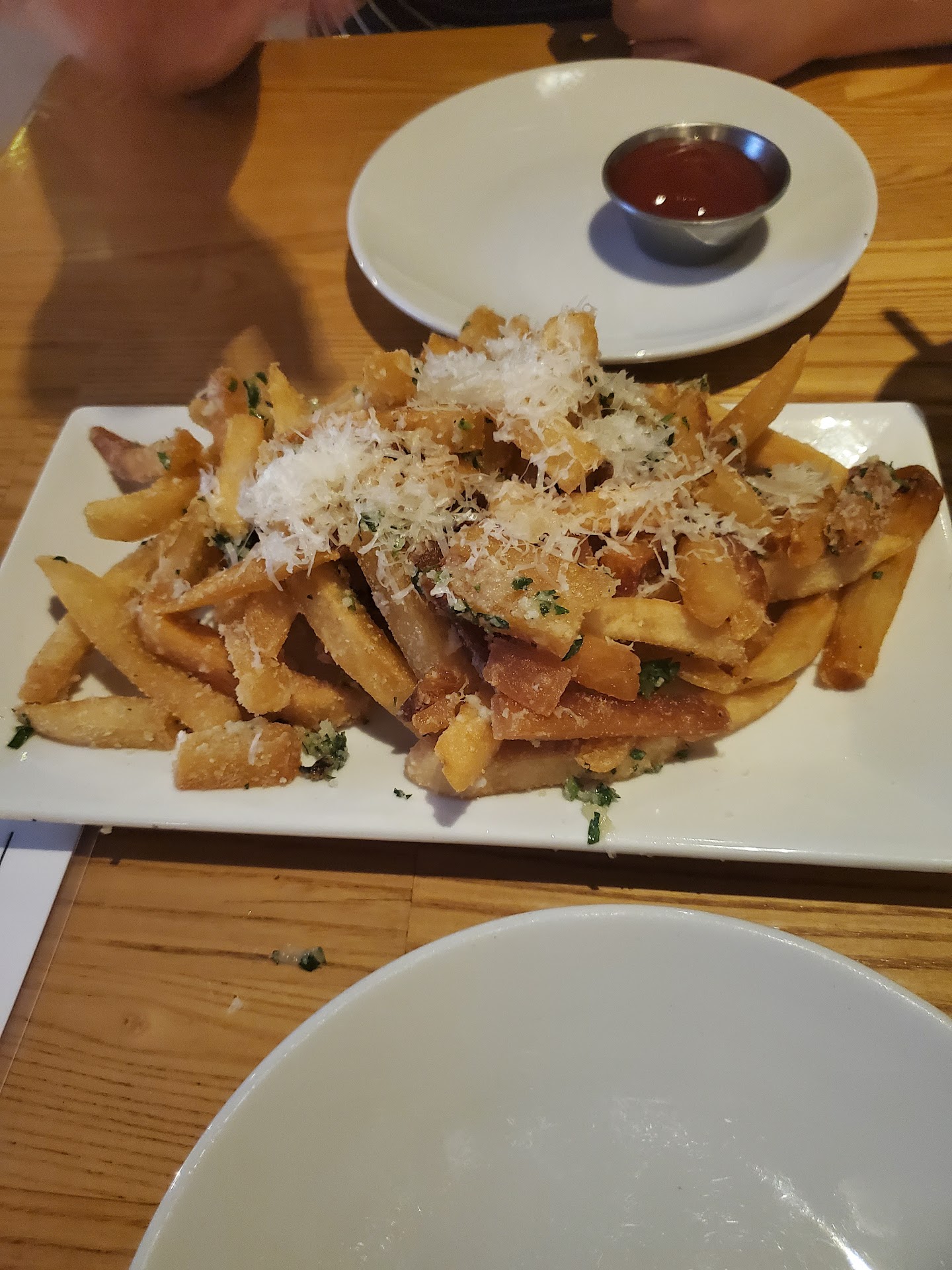 Im from Corona and i looked up this place while Apartment hunting the Ahi Poke Nachos where the item that made me come here.. Unfortunatly they were sold out so we got The Truffle Fries ( were alil over cooked but we like crispy fries) but I only asked a simple question, if the burger was handpacked (yes or no would have sufficed but my waitress didn't understand and gave us a doffrent waitress) so whatever no big deal but what was unprofessional is she than began to ignore me (our previous waitress) she came to our table a few times to get my sister some more drinks but when I asked she ignored me... the only time she was intrested in anything I wanted was more alcohol... so Experience was like I shouldn't be there or ask simple questions just shut up n eat. Food - Burger was so greasy made my stomach churn (Not handpacked has to be smashed into a thin peice of paper.. honestly In-n-Out burger has better flavor. The Bun was burnt, my "Grilled onions" were charcoal. It was unpleasant to eat I couldn't finish. My sister had the Fish and Chips she stated they were also super greasy and possibly Pre-Frozen the breading was soggy (even tho it was fried) Overall food was Mediocre for 92$ But Experience...