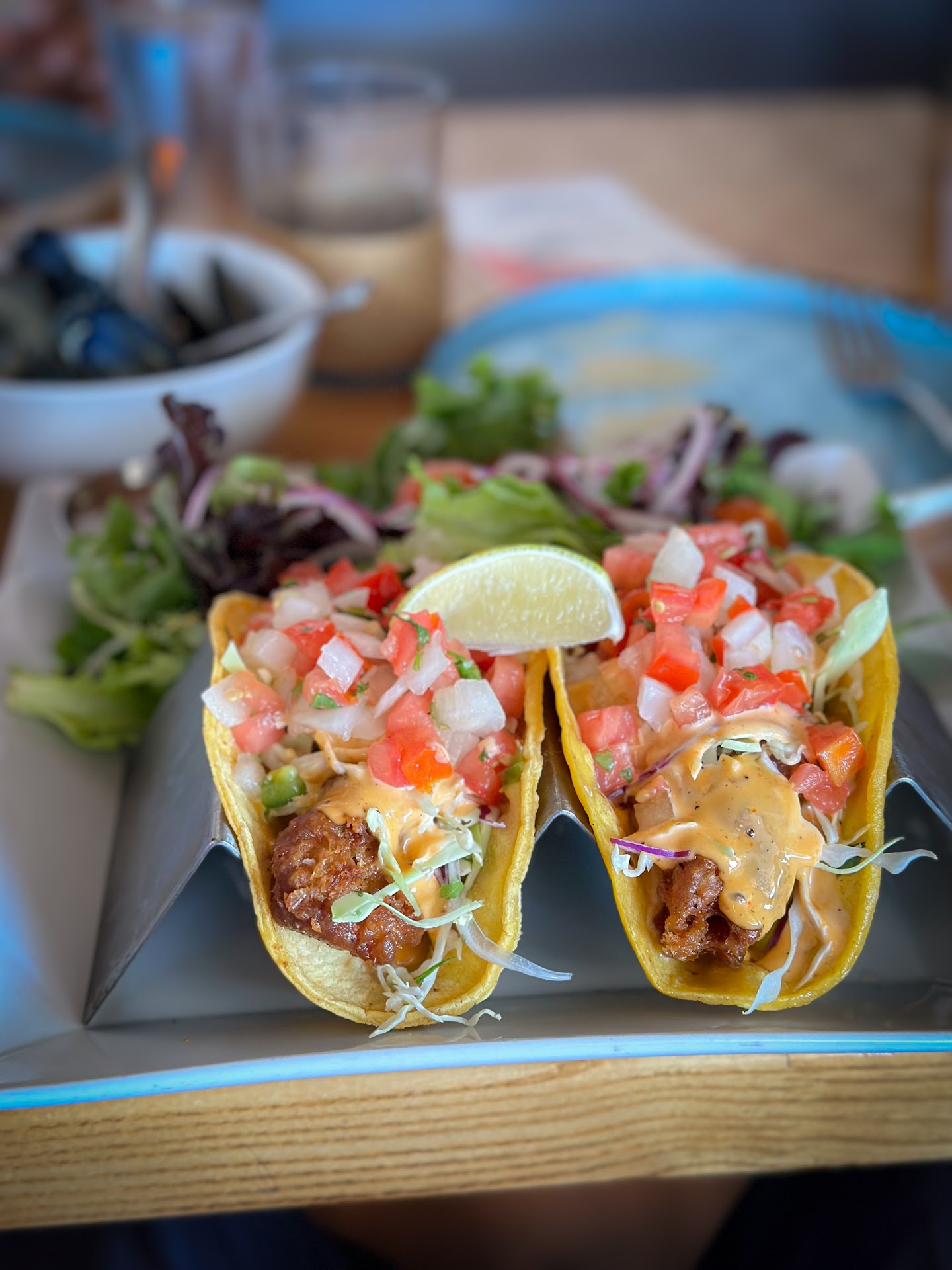 We had lunch with our daughter and baby granddaughter, and it was the perfect setting for her first beach outing. The seafood was outstandingāthe scallops and fish tacos were fresh, cooked to perfection, and bursting with flavor. The steamed clams were another highlight, especially the rich broth, which we eagerly soaked up with the grilled sourdough. My daughterās shrimp pasta was just as impressive, offering bold flavors and perfect textures.