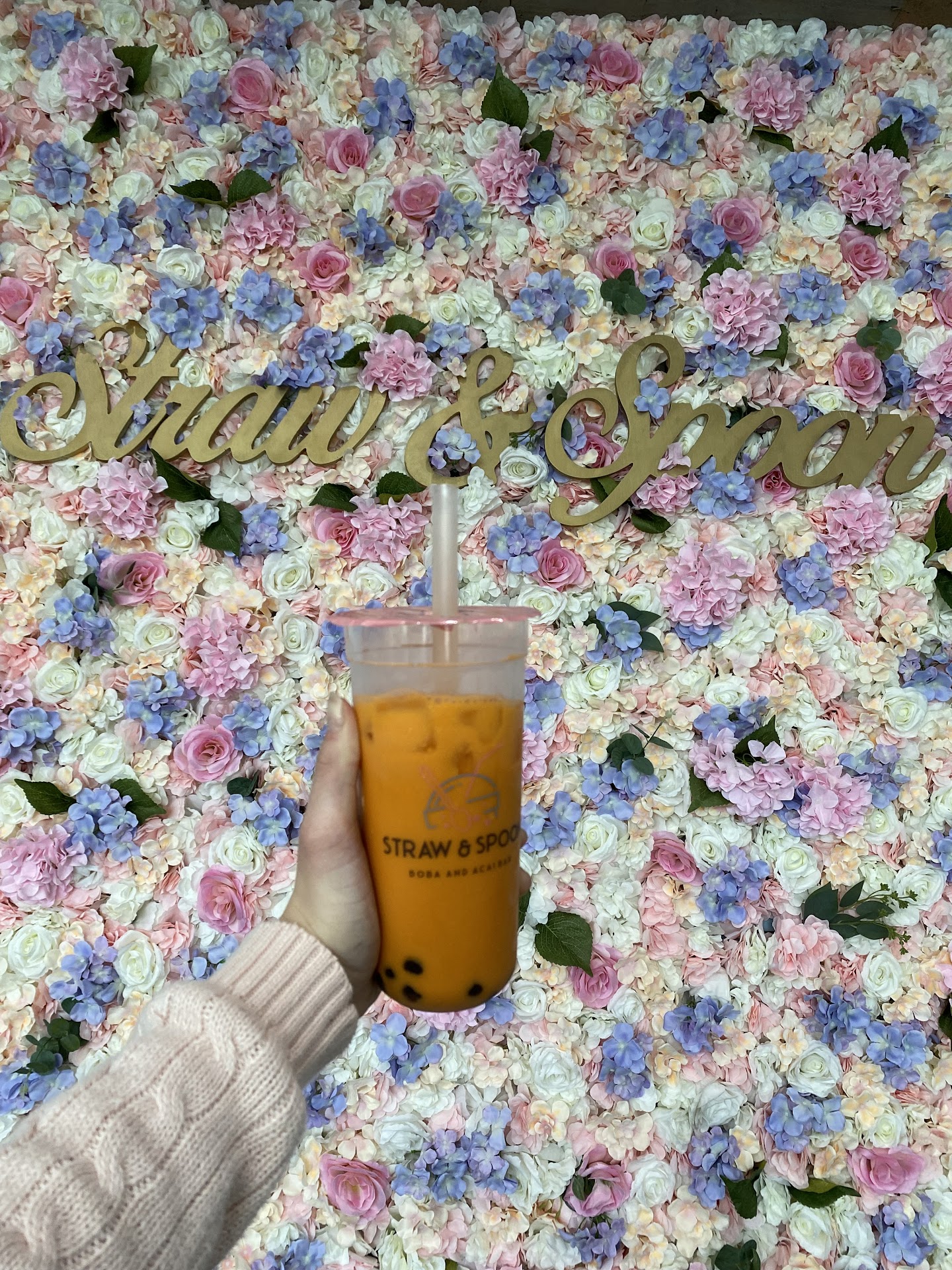 Read moreSmall, hip shop selling various teas, acai bowls with various toppings, and boba. The boba is good and well made with a decent sized serving for "regular boba" -- the other boba options are "double boba" and "triple boba". There are various sweetness options as well if one doesn't want their drink too sweet. Drinks come in one size, and the acai bowls come in various sizes. So far I've ordered matcha latte, sweet milk, Thai tea, and a milk tea, all with boba. They were all good, being enough to satisfy.