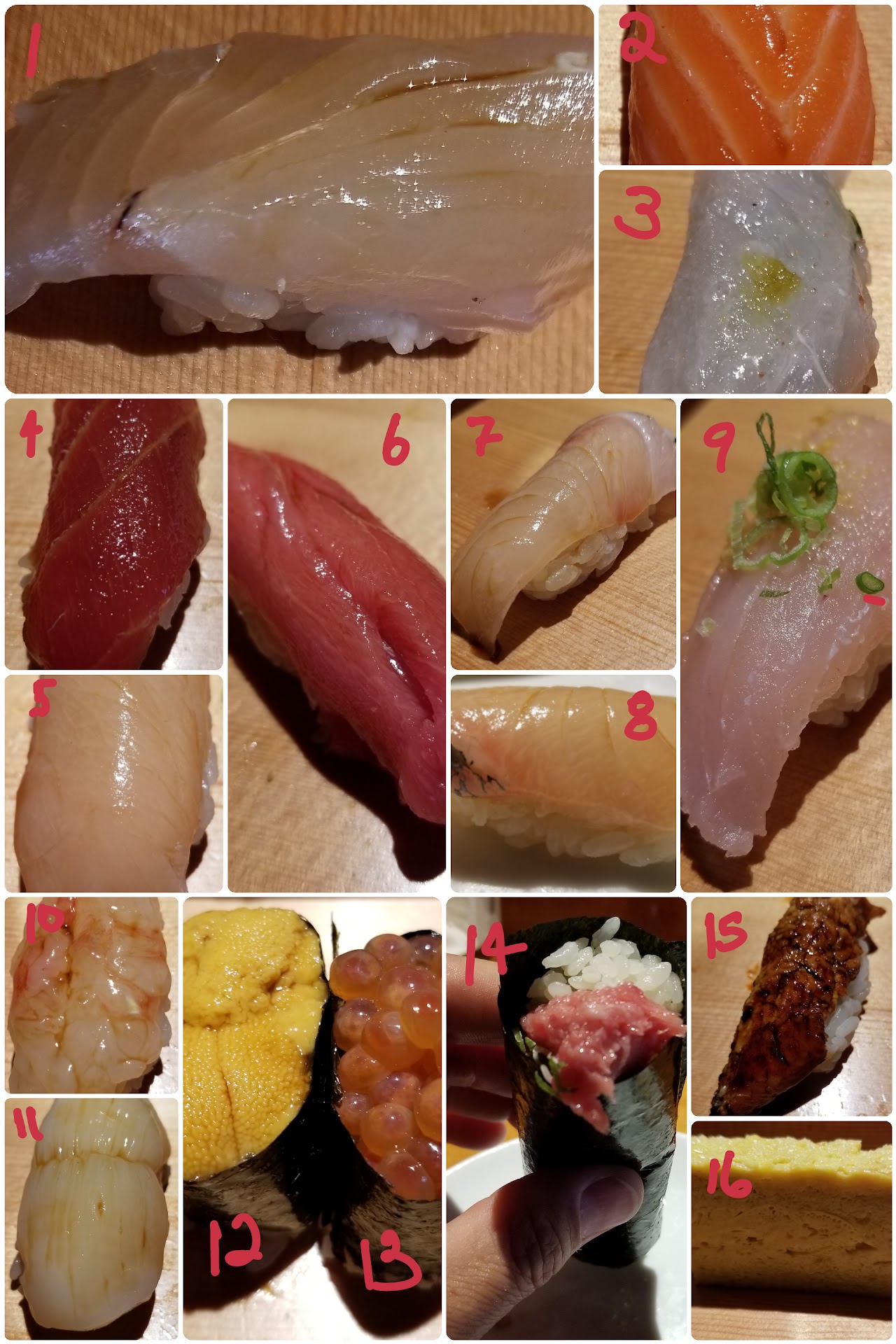 As I said, I couldn't stop the so the chef kept going, which ended with some even higher premium cuts! Aka Amadai (Tilefish) Isaki (Chicken Grunt Fish) Kinme Dai (Alfonsino/Golden Eye Snapper) Seared Kama Toro Nadoguro (Blackthroat Seaperch) Then I ordered the spicy hotate roll for dessert...