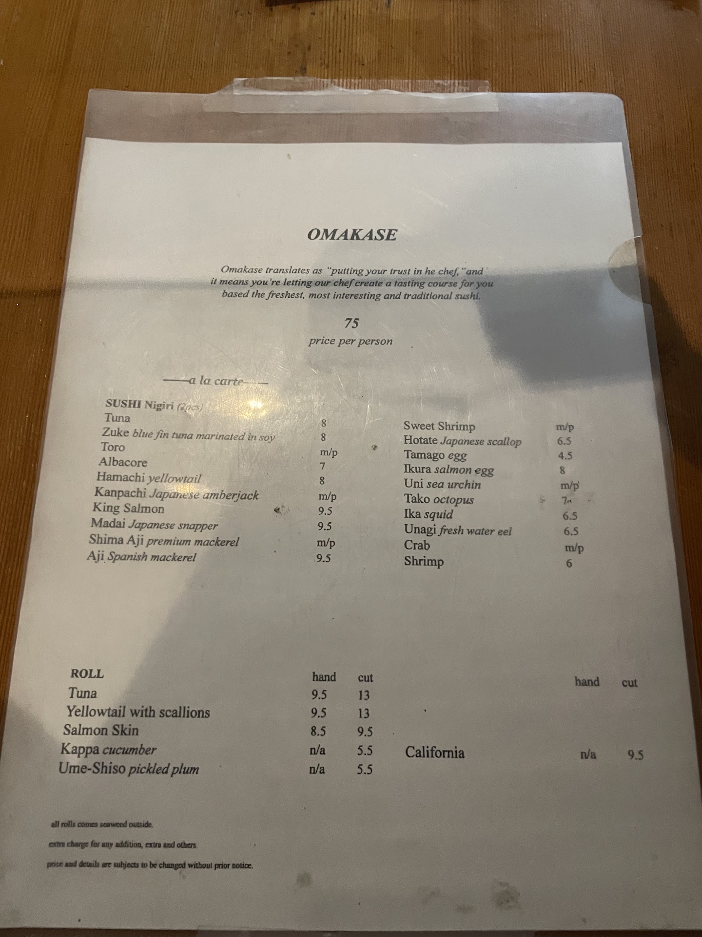 I almost didn't go in and that would have been a huge mistake. To say this place is unassuming may be an understatement! ...but this ended up being in the top 2 sushi experiences I have had (next to Japango in Toronto). The omakase was fantastic and I challenge anyone to find a better fish selection for the money! Super fresh cuts that melted in my mouth...so I kept going when the omakase was done. My experience started with monk fish liver. I learned that I actually do like this after having it here. Then, from the pictures: Hamachi (premium yellow tail) King Salmon Madai (red snapper with mint and ginger...amazing!) Blue Fin Tuna in soy Yellow Tail (great, but not quite as good as #1) Maguro (tuna) Not sure Shenaji (premium mackerel) Albacore Tuna Ebi (Shrimp) Hotate (Scallop) Uni (Sea Urchin) Ikura (Salmon Roe) Toro hand roll Unagi (Freshwater Eel) Tamago (Omlet)