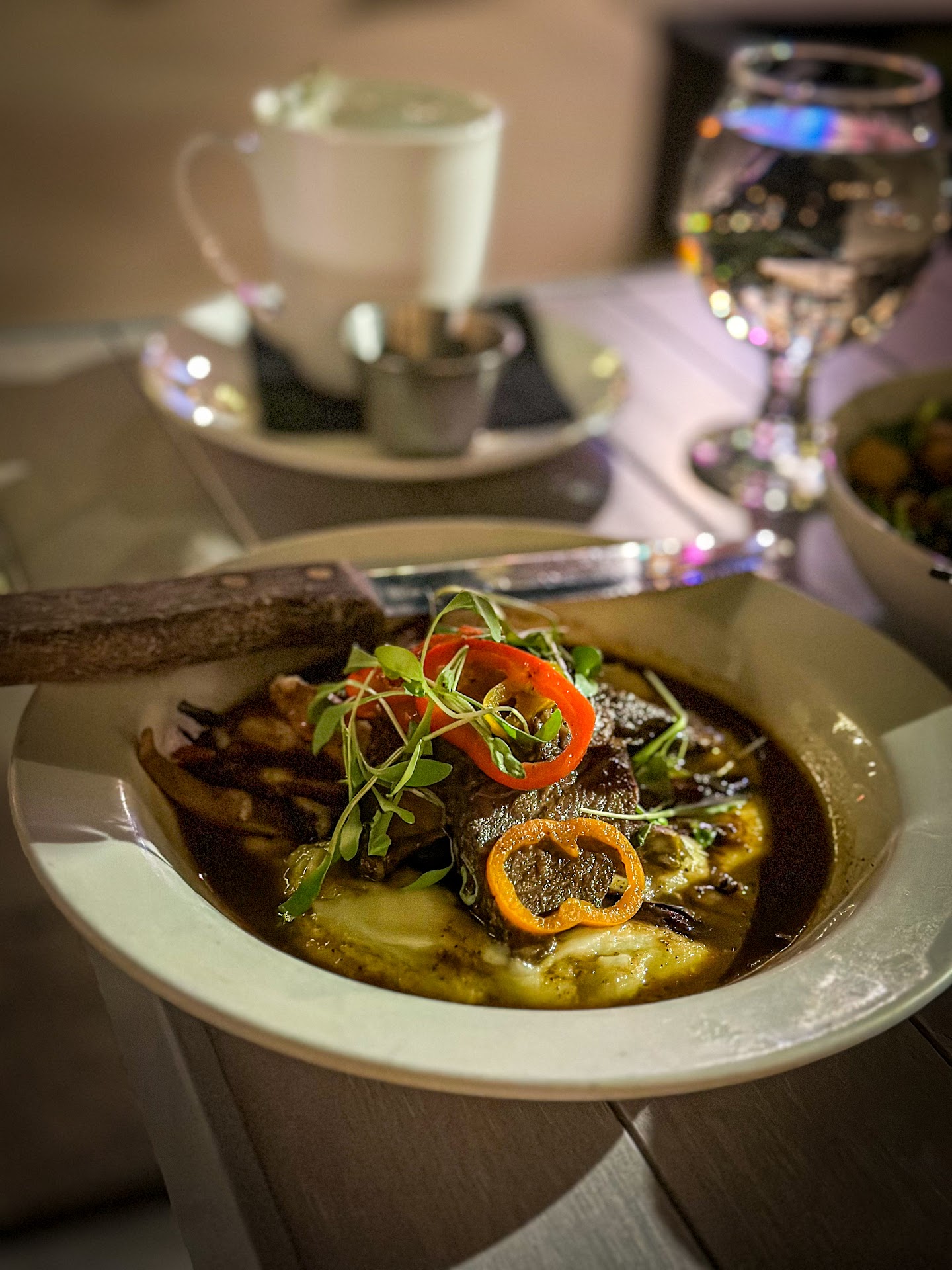 The menu, while concise, offers a well-curated selection of dishes. We started with the burrata salad, which featured fresh arugula and a hint of vinaigrette—a perfect balance of creaminess and zest. For our main, we had the short ribs, served with smooth mashed potatoes. The flavor was outstanding, though the short ribs could have been slightly more tender.