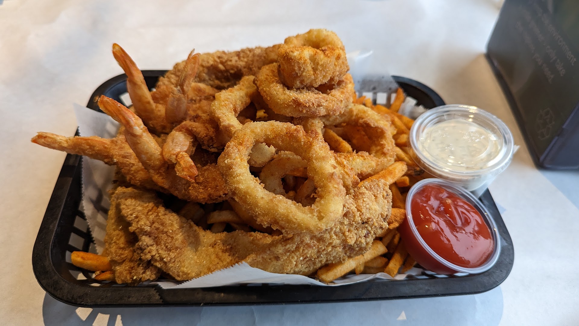 Pros: ⢠Shrimp Medley sauce is so good, especially the spicy sauce. (I ask for less garlic as well) ⢠The Fried Ocean has a little bit of everything and just perfect. ⢠Fountain drink refills! ⢠Customer Service! I kept getting visits, felt great to be taken care of. ⢠The food, the food, the food - tasty and fresh.