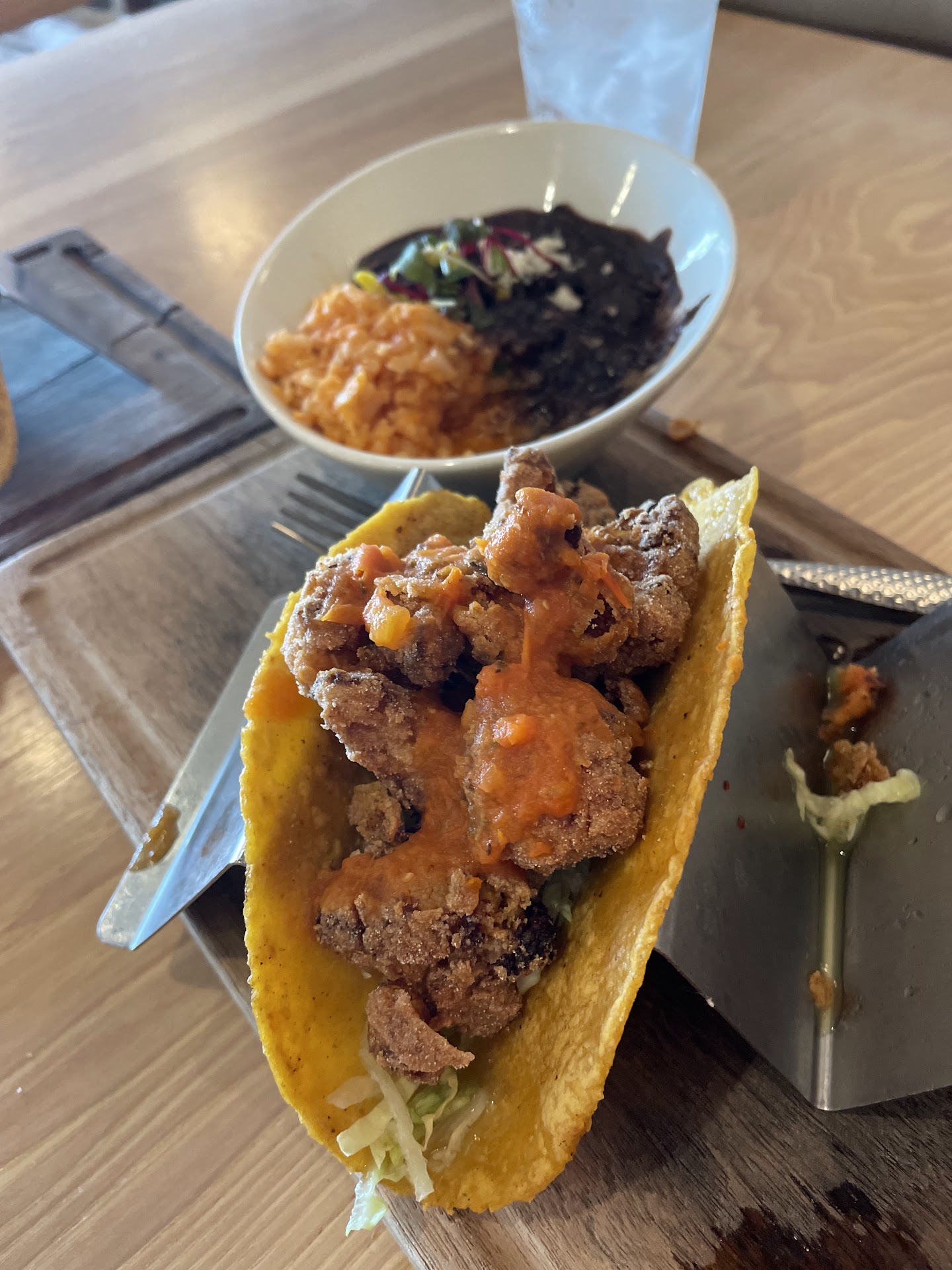 The tempura cod is cooked perfectly and has a great crunch when you sink your teeth into it. The perfect Baja style fish taco. This last time, I ordered the chipotle chicken taco which somehow called out to me from the menu. Wow, what a great taco, filled with juicy chicken and a generous amount of grilled red onions and jalapeños. Delish. The green rice is the better option over the Spanish (but the Spanish is still quite tasty) and the refried black beans are the better choice over just black beans (also tasty).