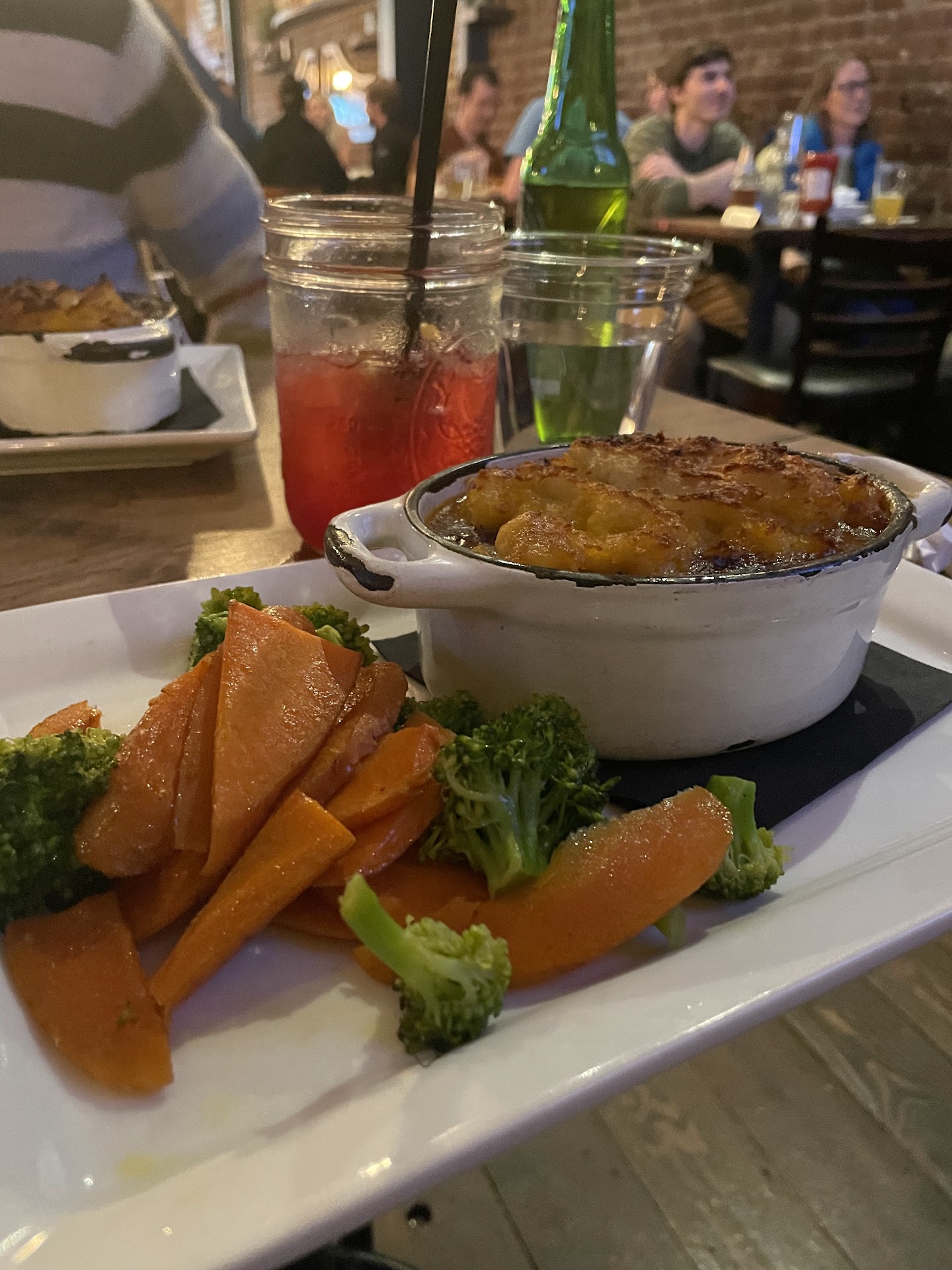 The food was excellent across the board. We ordered the fish and chips (a big portion and absolutely delicious), a crisp and fresh southwestern chicken salad that hit the spot on a hot day, and a traditional shepherd’s pie. The drinks were good too—everything felt thoughtfully prepared.