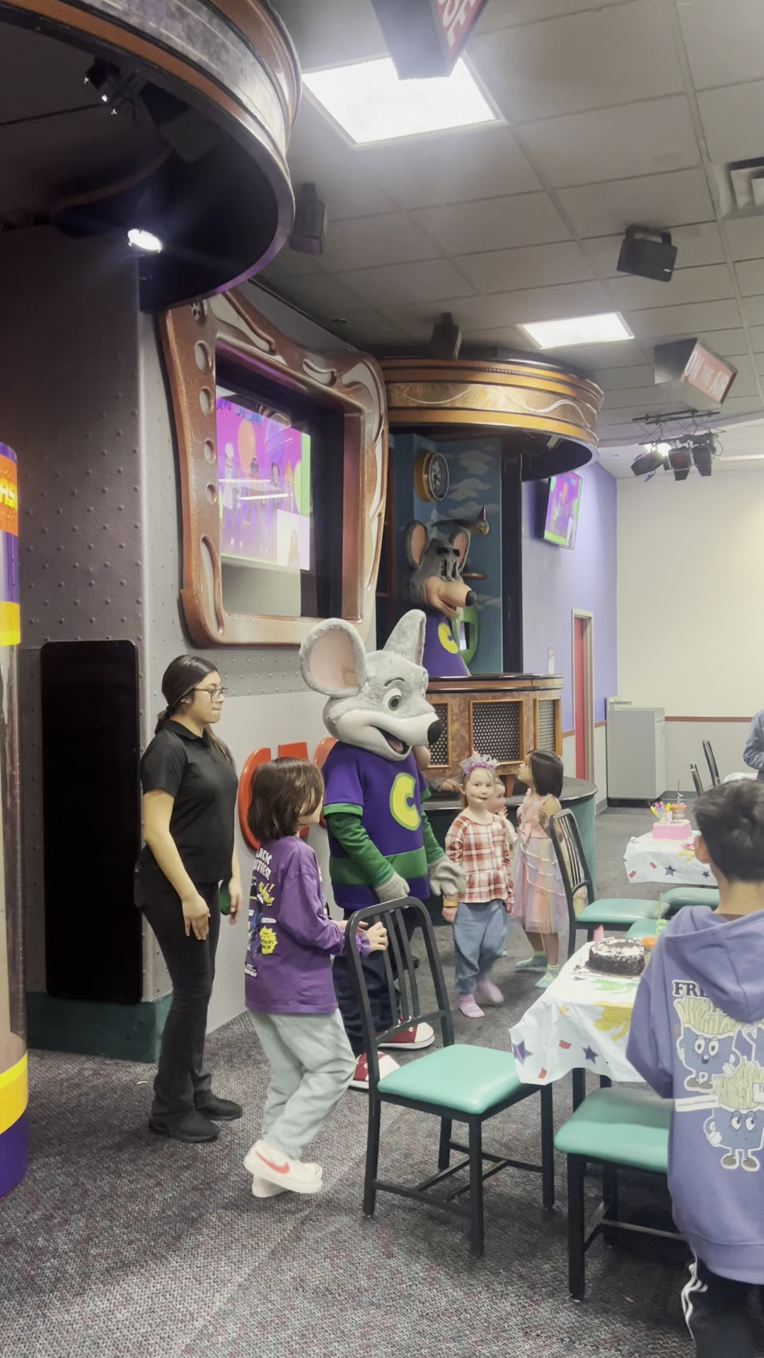 đ The Birthday Show & Chuck E. Cheese Magic A huge highlight was the birthday show! The kids got SO excited when Chuck E. Cheese himself came out to celebrate, dance, and take pictures. Seeing Jaydenâs face light up as everyone sang to her was priceless. The energy in the room was contagious, and every kid there felt like they were part of something fun and special.
