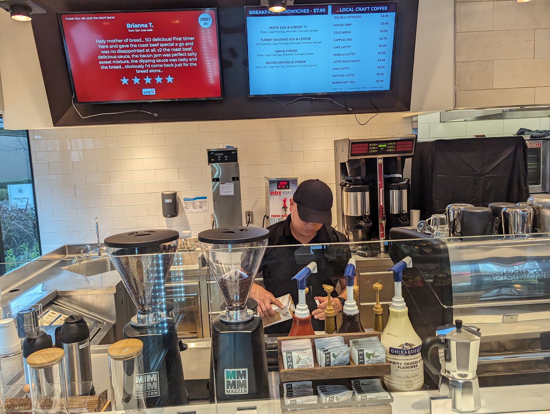 Read moreCrust has made it to Redwood City! The sourdough sandwiches are delicious as always -- but news alert! This location also serves coffee and breakfast sandwiches. The craft coffee is from a small batch local roaster and is full-flavored and oh so smooth. If you're a coffee aficionado, you gotta give it a try. Plenty of seating inside and on the...