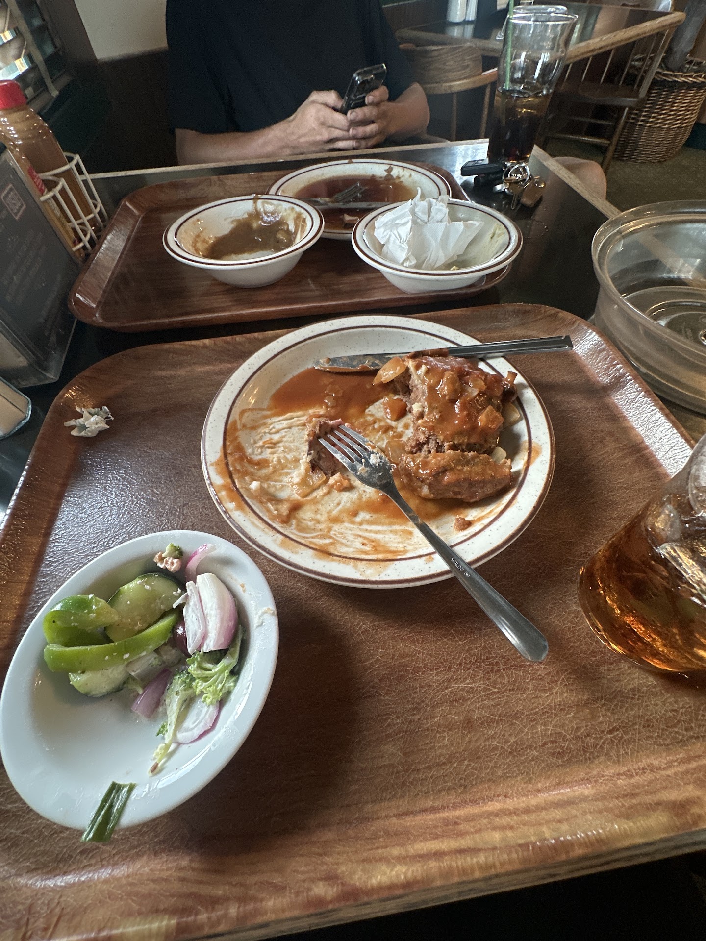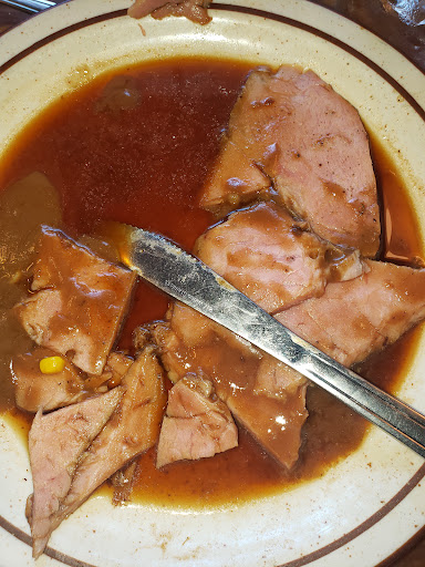 3 Ham dinners, 1 turkey dinner and a Roast beef sandwich was ordered. It was mine and my twin sister's Birthday. We loved Harry's Hofbrau on the border of San Jose and Santa Clara. We were saddened when it closed down a couple years ago... so we were excited to find and eat at this Harry's in Redwood City. We were disappointed! All the plates were lukewarm or cold! Ham had rubbery texture to it.. maybe because it was last of the ham slab. No flavor or taste to the food. No salt or pepper on tables or given. Utensils were dirty. It was like eating in a cafeteria... not a restaurant. At the serving counter... The meat server was older gentleman. He was quite nice and inviting. The other larger lady serving sides was rude... rushed us thru the line. Semi slammed plates and stuff that we asked for on to the tray. She got really upset when we asked her for some butter for the hard staled rolls. She kinda threw 2 butter pats on the plate. It was not too busy in the so called restaurant. Being that the food was not too appetizing and service was rude... we are on the fence about going back, although we would like to give them another chance... honestly...don't know. Maybe we held it up on a higher standard since the old Harry's Hofbrau in SJ/ Santa Clara was so good to us. Wondering how they can vary so much in taste and quality. The pics show the amount of ham we got. This was 2 plates of the 3 Ham Dinners we purchased. Pieces (served by a tall man in late 30s or 40s seemed like a manager and was dressed up differently) vs. FULL Slices. (served by the nice rounder older gentleman) We were NOT impressed by the Ham. Waste of money. The turkey looked good. The plate was eaten. Gave 1 star. Roast Beef was ok. It was eaten only because...