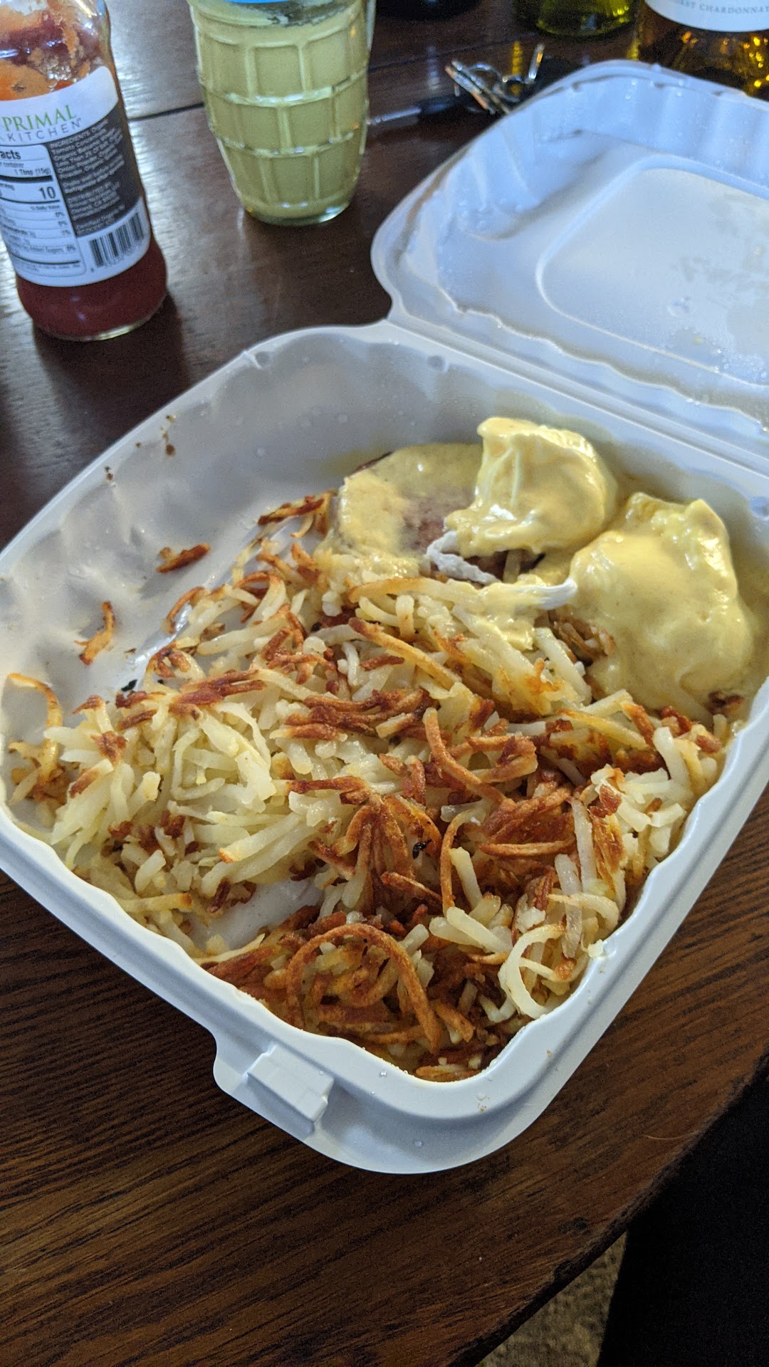 Original review: To their credit the apple fritter was great and poached eggs skillfully executed, the eggs whites were fluffy and yolk just the right amount of runny for a Benedict. I didn't care for the 'canadian' ham circles and next time will go for smoked instead. Ordering from UberEats was confusing, I'll tell you why: Picture and text shows with hash browns, then asks to add a side of fries or balsamic greens. I figured why get fries if I already have hash brown potatoes? So picked greens. When it arrived, I realize this was a semantics and typo problem. No hash browns, just the salad. This should be fixed. Don't call hash browns french fries. State you need to pick the salad OR hashbrowns. I love hashbrowns. I didn't really need a vinegary salad with breakfast. Oh well. Better luck next time. Eggs were warm but the rest was cold when it got here 15 mins later. Can't blame the restaurant for that. I tipped my delivery guy generously anyway. They need the money. I will be back in person and hope to give five stars next time. Please correct the menu issues...
