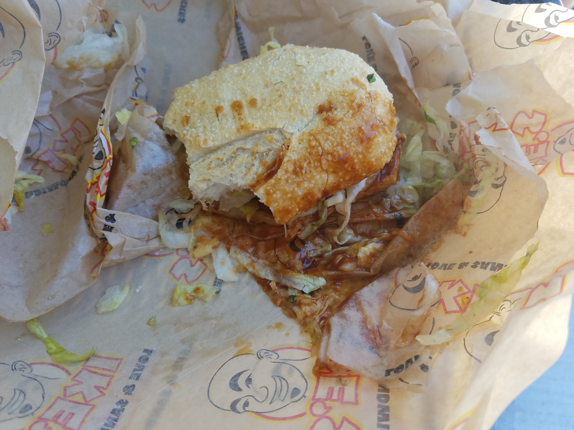 My wife didn't finish her sandwich, she went to the counter to ask for a bag, the guy there said, please bring it over, I will re-wrap it so it won't come apart when you take it home. That was a really cool of him, most places will just give you a bag and that's it.