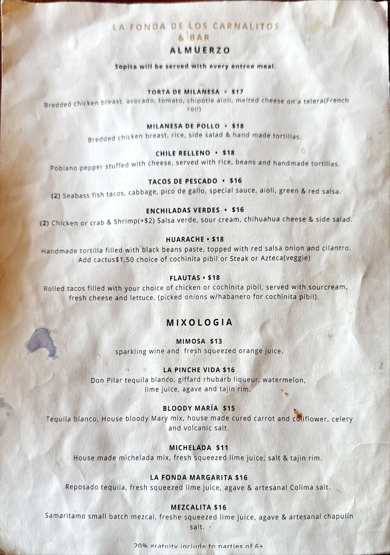 I was still hungry, so I ordered the mini crispy gorditas $14 filled with chiccharon. These were specifically mentioned in the article I read.