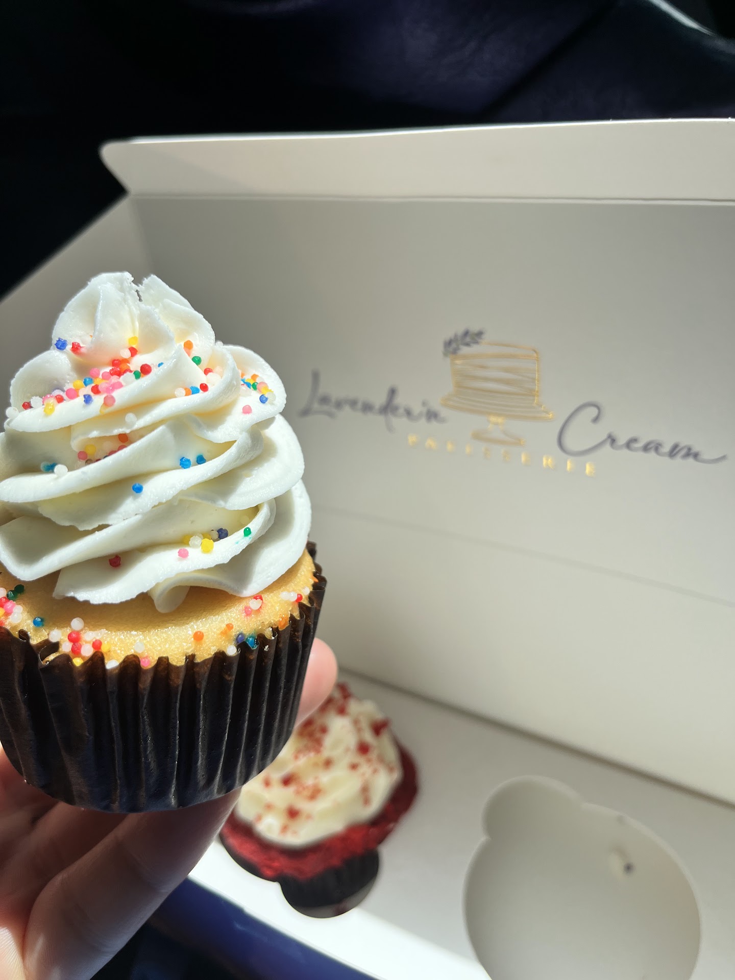 Read moreThe customer service was great- I was attended promptly despite it being a busy lunch time. I had a hard time choosing because they offer a variety of delectable looking sweets ranging from cookies to cupcakes to cake slices tarts and eclairs. They also offer sandwiches salads and coffee - a beautiful lavender color themed café. I chose the standard vanilla cupcake and a red velvet.