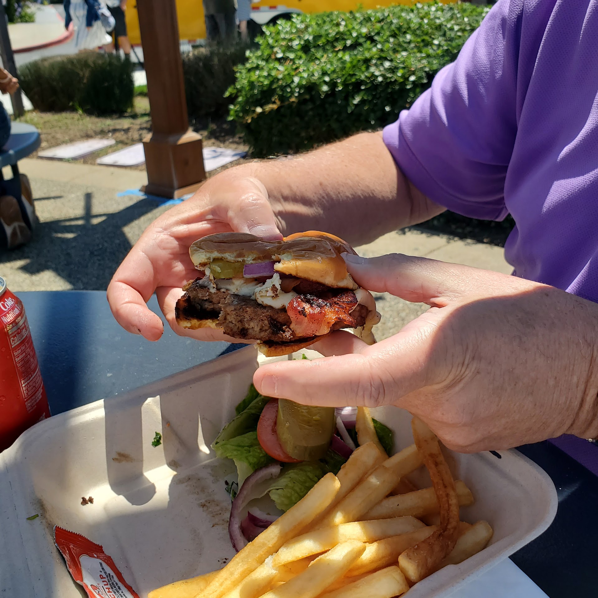 This is the type of food truck that one really wants to like - local business,located in a nice location with an inspiring seafood menu. However, the experience is the opposite. First of all, half the menu options are not available on the day we were there. Some of us attempted 3 times to order and the owner did not even attempt to let us know what is and not available until we order. We were the only customer, he just stands there, let us make the decision, then tell us it’s not available, this went on for several rounds with our party of 5. With the available options, quality is not good - clam chowder is way too salty, fish and chips is not fresh. Shrimp and calamari tasted line it’s been frozen/thawed multiple times.