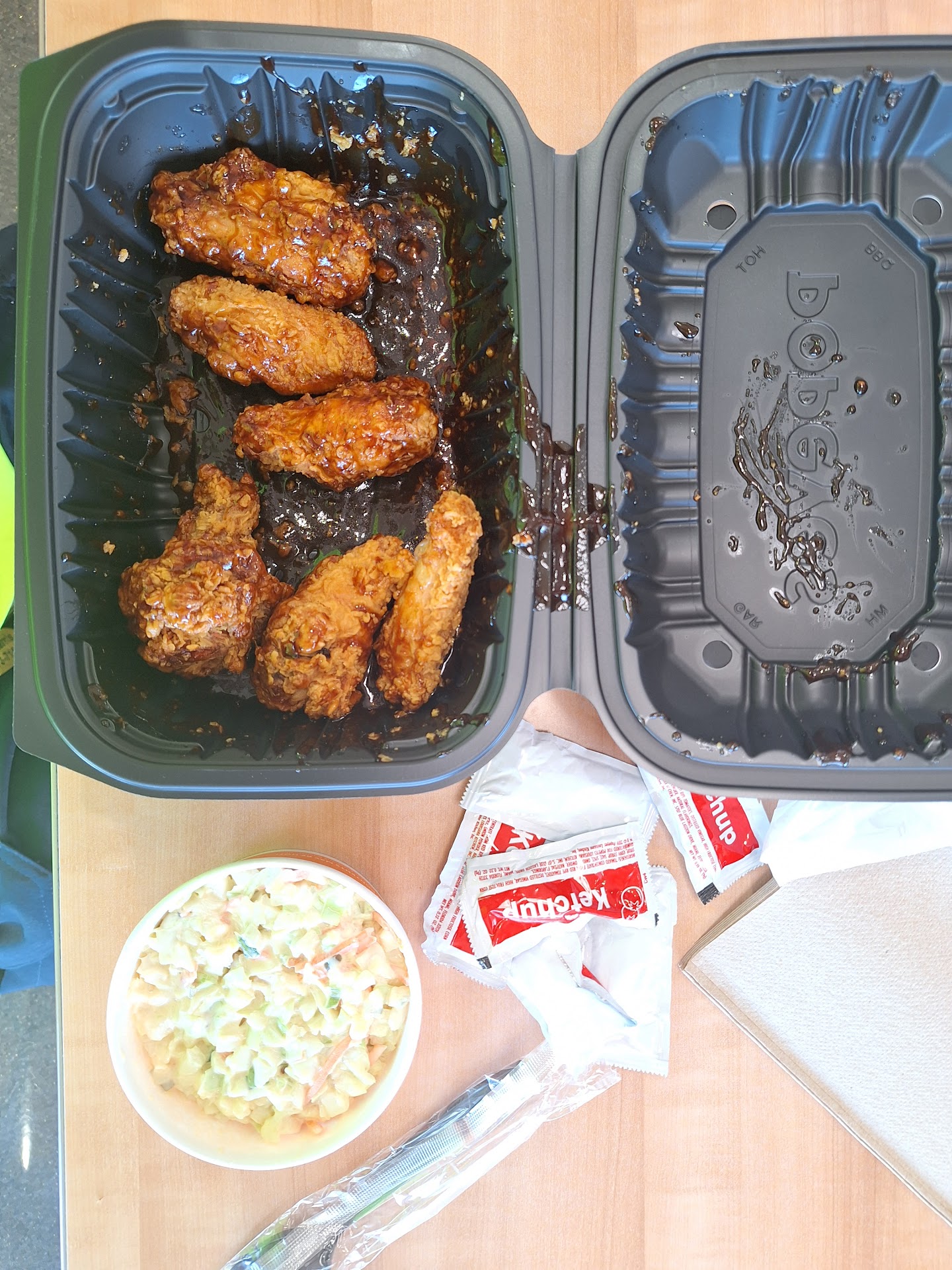 It was not that busy, but there were people coming in and out placing orders & buying food. Many people were working, yet it seemed so rushed and hectic despite no line or rush. Having 3 people assemble our order so rushed and hectic is why I can see how our order got so mixed up. Yet I'm not sure why not one person took the time to assemble it ahead of time or pay attention to the order details or read the order receipt they were using as reference or check to see all items were there before handing it to us.