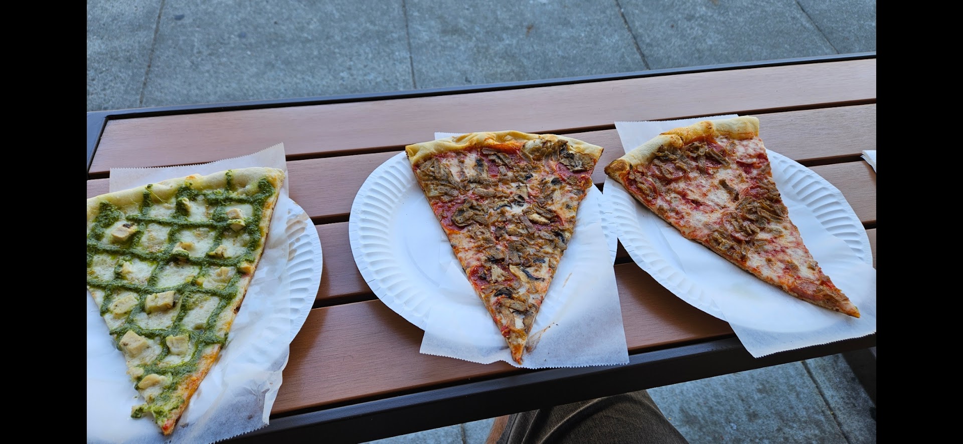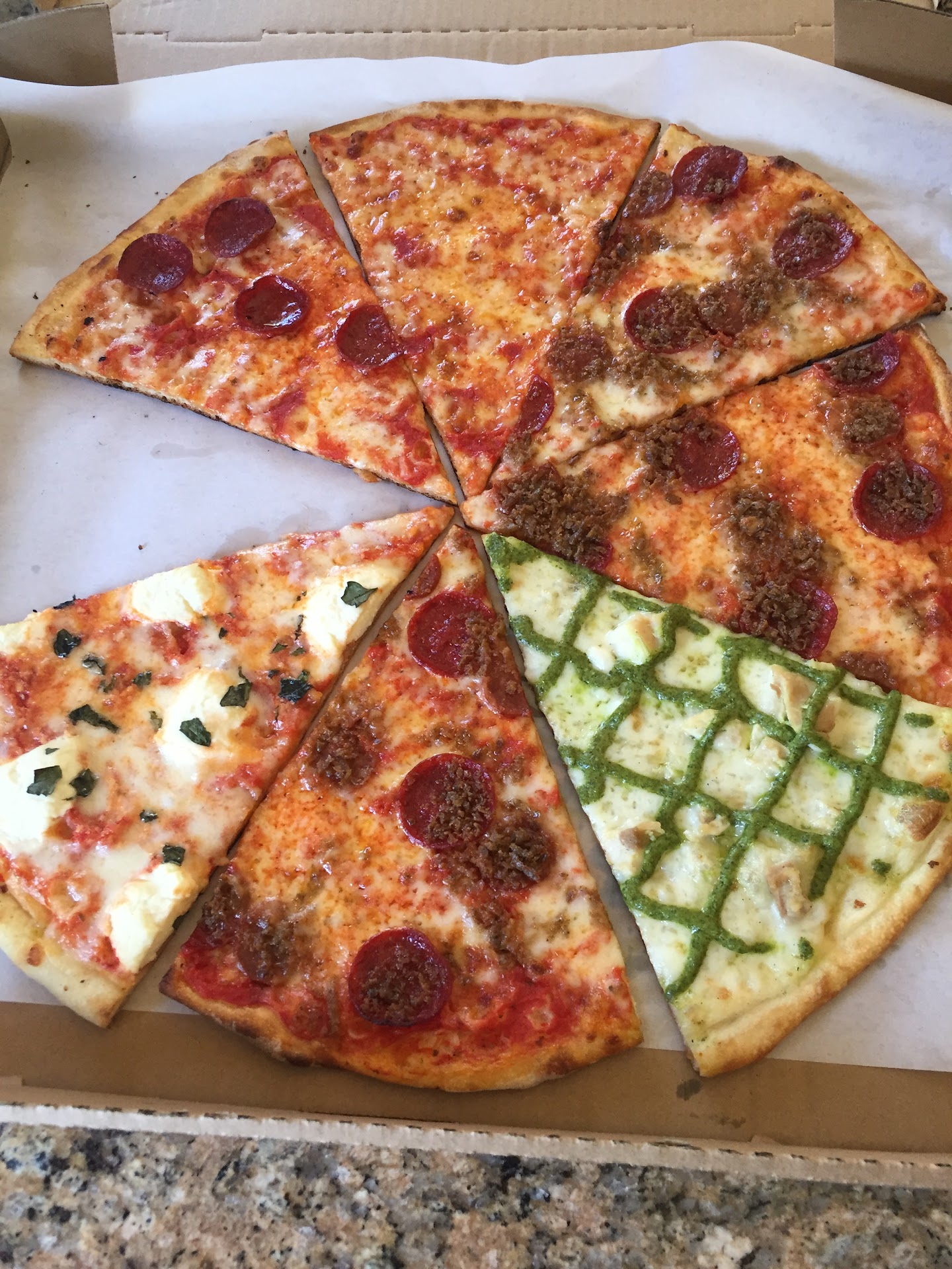 Read moreThis is one of the few bay area pizzerias that give that true New York pizza experience. No gritty cornmeal in the crust is one of the reasons. This crust has that certain crispness when bitten that says "New York", and is hard to explain. ---it exists more when you order it the re-heated by-the-slice way. Not so much when you buy a whole pie and allow it to steam away at itself in the cardboard pizza box. I guess this is partly true because you hardly ever see a person in New York walking on the streets or getting on the crowded subway carrying an entire pizza pie in a box, do you?