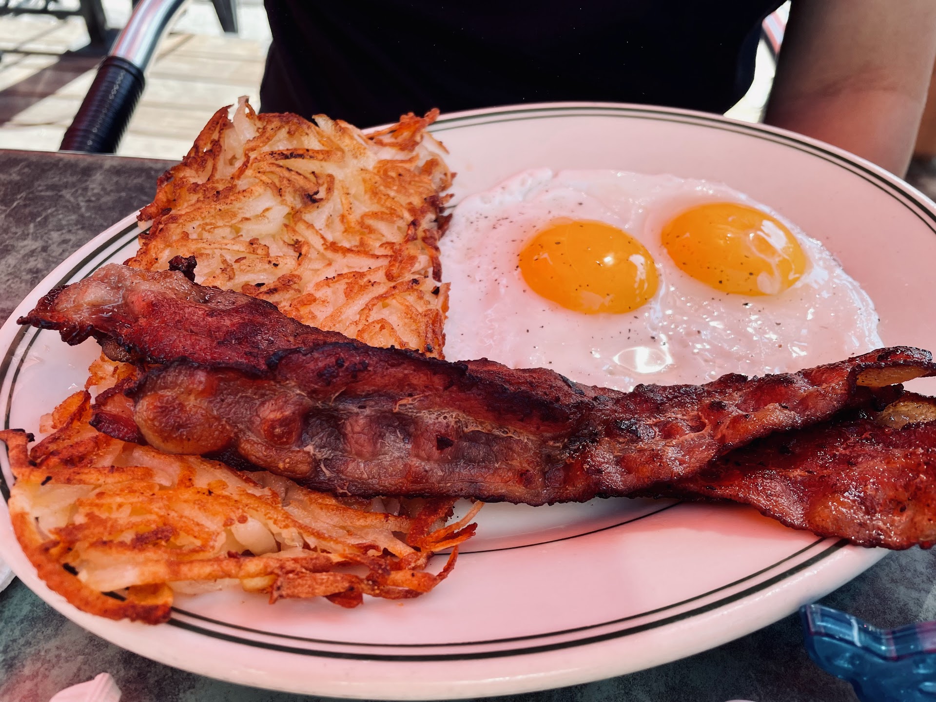 Came here for Sunday brunch because I craved American style breakfast and I wanted to try a new restaurant (not our typical one). This was a bas idea… The place was half full but the service was slow. Servers was not particularly rude, but they served with a frown, rather a smile. And, I don’t like that they put the receipt on my table when I haven’t finished yet. We ordered the classic, Bacon with two eggs and hash browns, with a side of white toast & jam, and Chef’s crepes (basically it was just ham, sausage, bacon, onions, mushrooms & cheese) and with a side of 2 eggs (costed $4). The classic breakfast was fine, you could not go wrong with bacon and eggs, but the hash browns could be better. The only good was the white toast. For the crepes, I could only say we have has better crepes than this. The side potatoes was bad. They said .Crunchy. potatoes, but these were nowhere near crunchy. Overall, bad experience during my first time to...