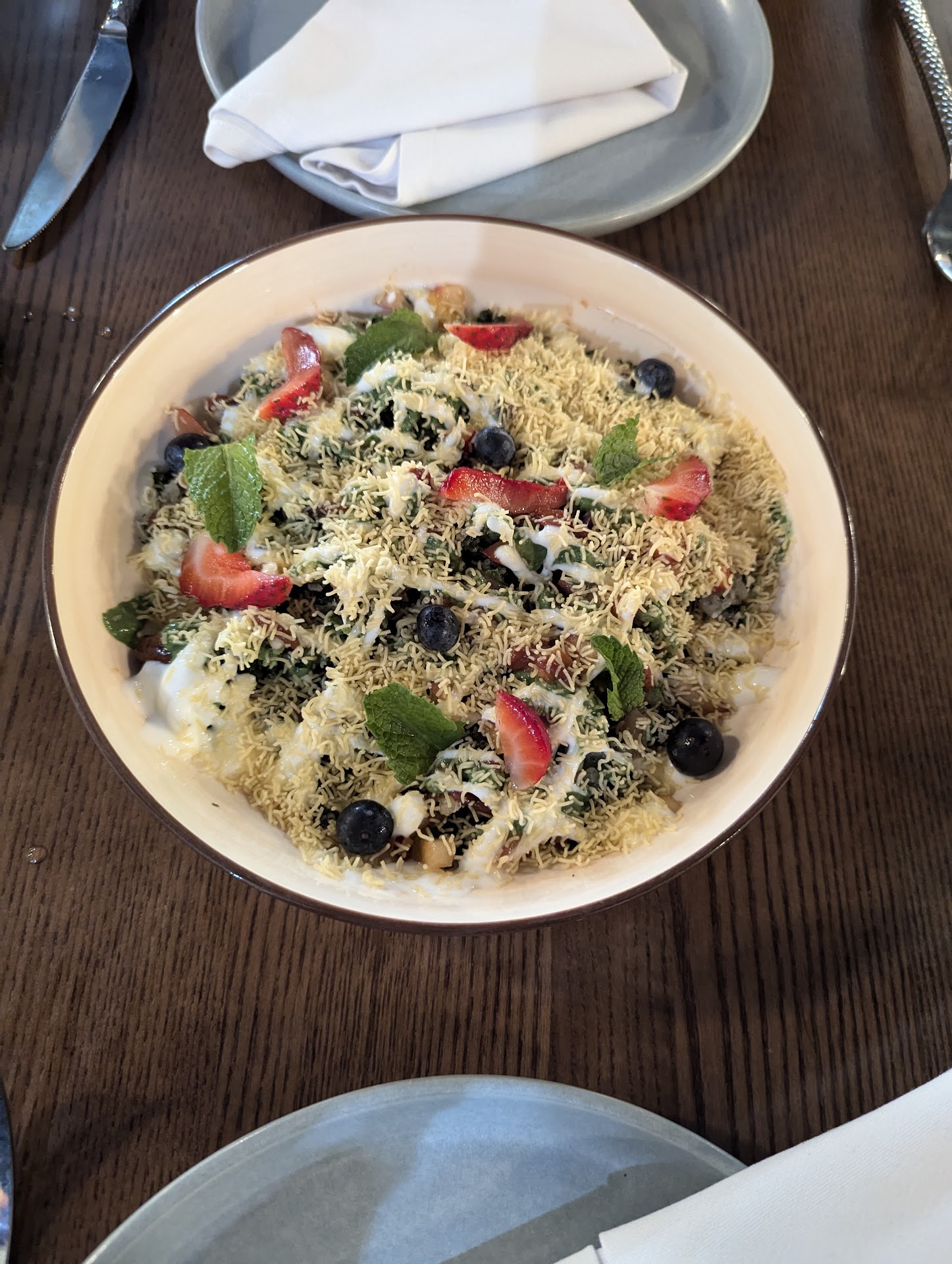 Golgappa: Don't be fooled by the name. This was a sugary mess, more akin to a Dahi Puri with fruit.