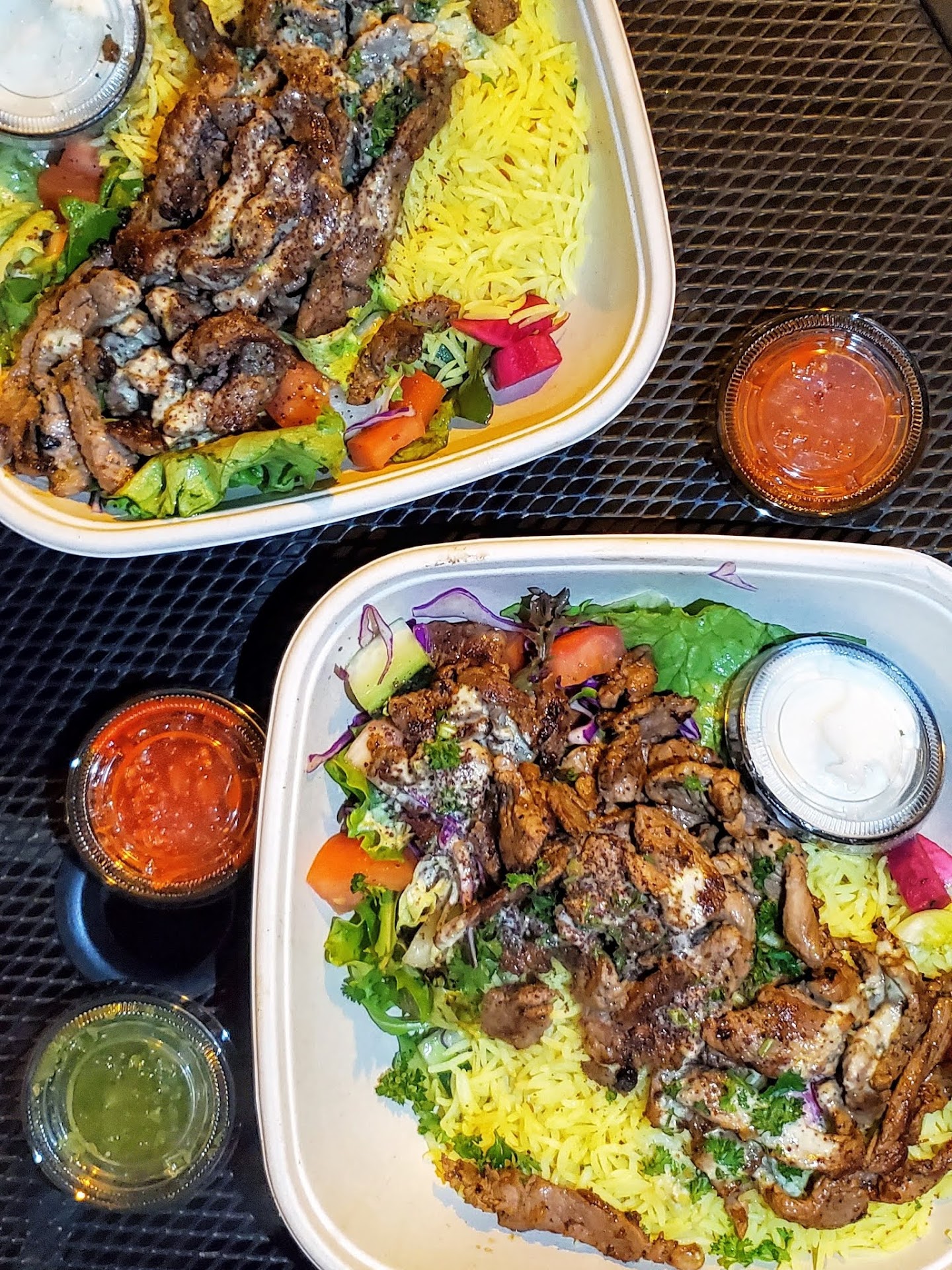 The lamb and beef shawarma plate stole the show. The tender meats were marinated and grilled to that perfect edge between juicy and crisp, beautifully layered with hummus and sautéed onions. The lamb brought a savory fattiness, while the beef added a cleaner bite—balanced out with a refreshingly simple salad that let the ingredients speak for themselves. We also shared the half chicken with fries, which, while ordered under the guise of “moderation,” became very necessary when it came to soaking up the tangy seasonings and sauces. Pro tip: the leftovers reheat exceptionally well in an air fryer.
