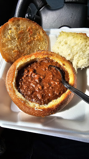Read moreI only ordered a bread bowl of clam chowder and was very disappointed at the amount I received after paying $16.00 for it. As you can see the plastic spoon is on its side and it isn't even covered all the way. The bread itself was amazing. The clam chowder was watery but full of added flavor. After using the extra bread to soak up the watery broth, there was no more broth left -_- I'm a clam chowder fan, so that experience was very disappointing.