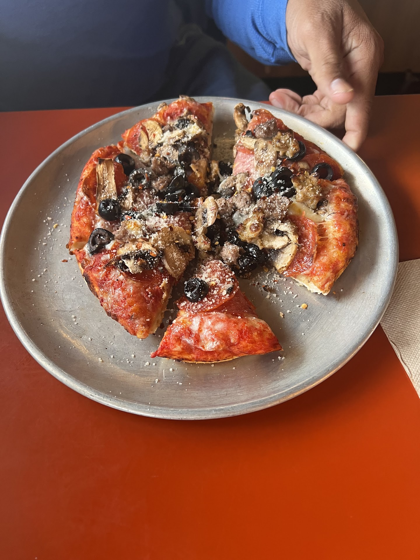 Read moreMe and a group of people went to this pizza place. Walking into the restaurant it was clean, inviting and smelt good. The pizza came very quickly. I didn't notice the not so pleasing taste of the pizza until I chewed a piece for about 10 seconds. I also didn't notice that it looked like all they did was put a four cheese blend of store bought shredded cheese on dough and put it in an oven, another thing I didn't notice but I did when somebody else took a piece of pizza is the pizza had a large amount of grease so much that it dripped from the pizza when you pick it up. After eating the pizza my stomach hurt, I went to the bathroom and it was a pleasant smell almost like it was sprayed with febreeze. I get into the stall and see that the floor has stains on most parts of the floor and what looked like dead bugs, I don't know when they clean their bathrooms but it looked like they hadn't cleaned it in a while. The toilet was surprisingly clean considering how dirty the floor was, after using the restroom I come out and some other kids were in there. I'm washing my hands while the other kid is waiting for the urinal to open, the kid that was already at the urinal flushes the urinal then starts coughing, plugging his nose saying that he flushed the urinal and it released a horrible smell. I go to the urinal and put my nose close to it and as he said, it smelt horrible, almost like somebody pooped in it and the poop sat there and got old until somebody finally cleaned it. All three of us had to leave the bathroom because of the smell. That was just the boys bathroom, one of the girls in our group told me that there was a used pad sitting on the floor. I didn't want to give this place a bad review, because as I said it was inviting and clean outside of the bathrooms but when I got to the bathrooms and saw the pizza, it started to become a bad experience. The customer service...