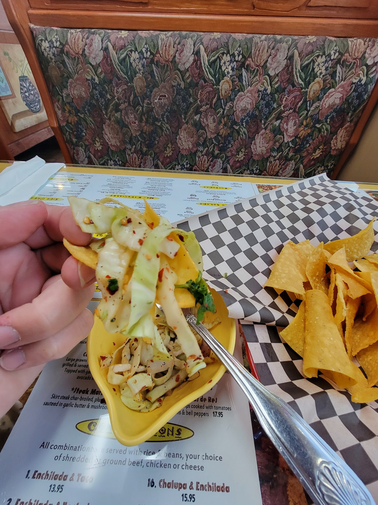 Read moreLove it. Baja style Mexican is great. Family run by really friendly people will treat you very respectfully. A must try is their Rellenos! The egg is made into a crepe - which enrobes the cheese stuffed Anaheim Chile and served with a flavorful sauce. I love how the relleno flavors burst through without all the deep fat oil! And they solved the old predicament of 'old rellenos' - as all mexi restaurants cook up the day's anticipated use of rellenos in the AM. Most diners maybe have never had a fresh Relleno.....well, they should! It's delightful! Another treat is the Mexican Cabbage Slaw served with the obligatory Salsa and Chips. (BTW the chips are served fresh & warm). The Salsa is fantastic and the spiced cabbage gives your chips and salsa an added flavor crunch. Unusually their beans and rice are some of the best I've ever tasted! Not a flavor to knock your socks off, but subtle rich creaminess with the beans, and the rice a nice south of the border flavor. Unlike most rice that I've had at other, restaurants that was like chopped up cardboard or greasy filler on the plate. For lunch and dinner they have their Combinations that offer enticing pairings, some with three! And they have Mariscos! Seafood. Maybe best of all, the make their own Margueritas! Oh so tasty! Not cheap, but fantastic quality! It makes all the difference in the world by using fresh...